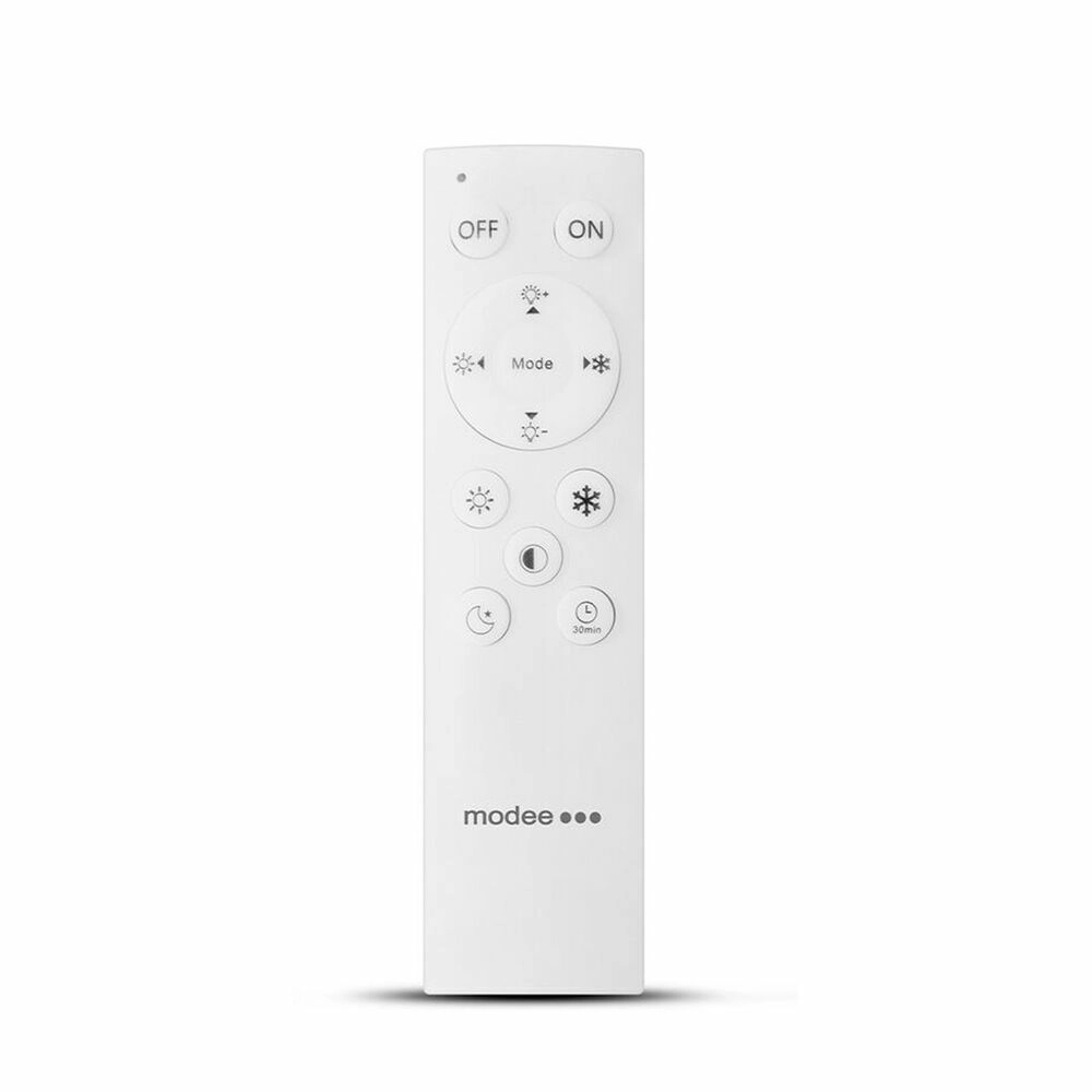 Élégant plafonnier LED circulaire Modee Smart Lighting A‑C205 offrant une puissance de 2×48 W, une fonction de gradation et une télécommande IR. Réglez facilement la température de couleur de 3000 à 6500 K, activez le mode nuit et grâce à la mémoire du dernier réglage, la lampe revient à votre mode préféré après l’allumage. Le verre opale mat avec bord sombre apporte une touche moderne à l’intérieur.