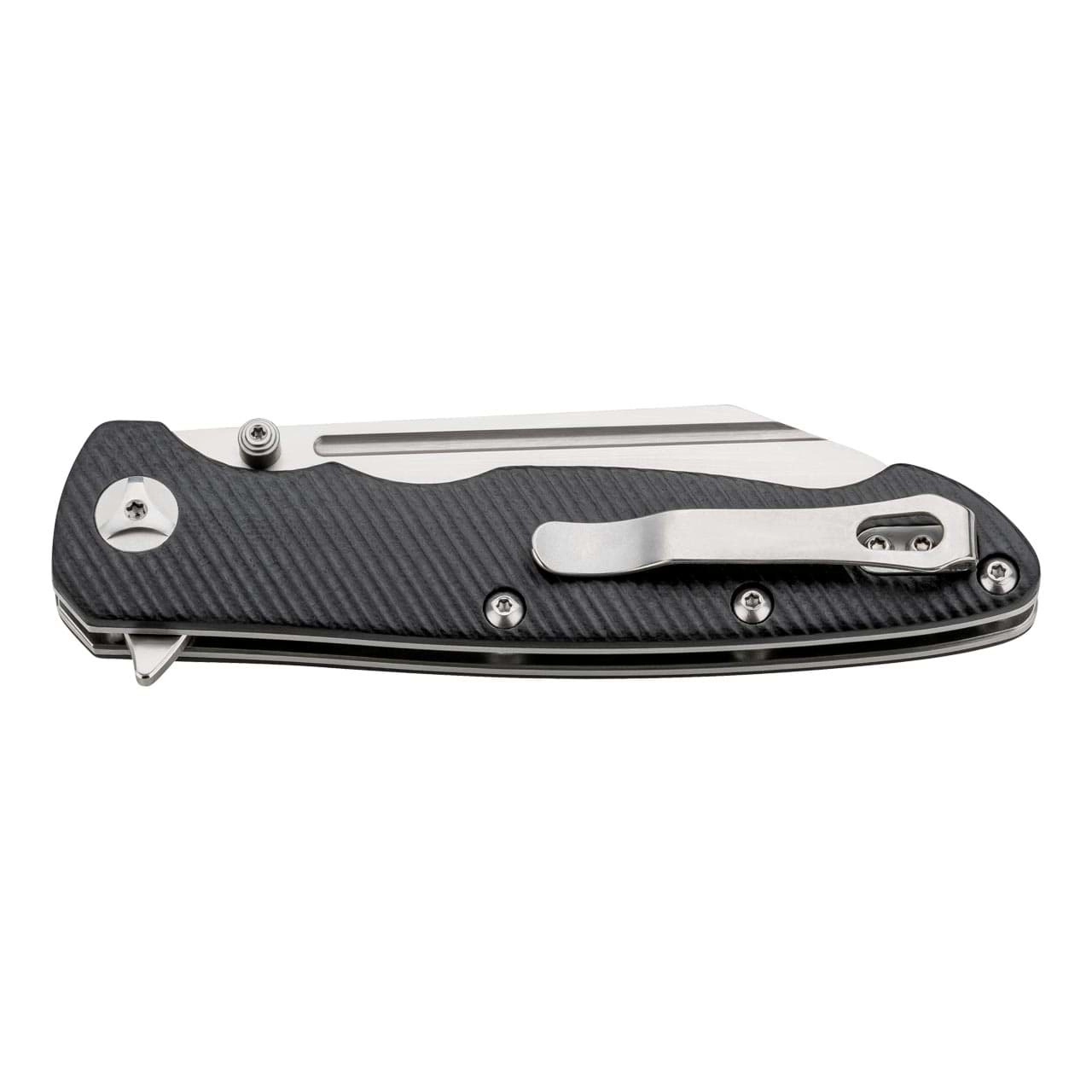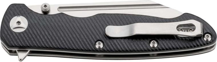 La poignée ergonomique et texturée en G10 noir, avec des doublures en acier, tient fermement en main et les évidements pour les doigts augmentent le contrôle de la coupe. Le Linerlock verrouille la lame de façon fiable en position ouverte, et le clip de poche permet un port discret et confortable au quotidien.