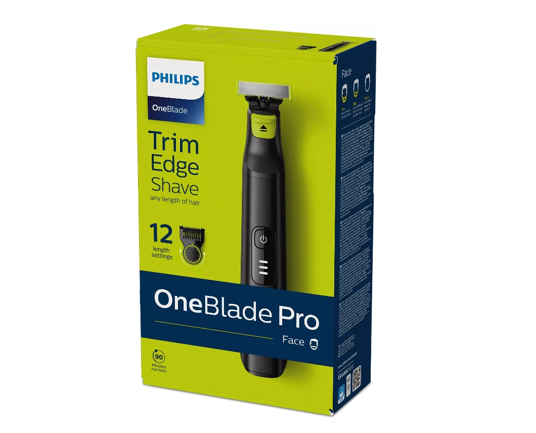 La tondeuse hybride Philips OneBlade pour l’entretien de la barbe et du corps assure le taillage, la définition des contours et le rasage de près des poils de toutes longueurs. Grâce à une lame effectuant 200 mouvements par seconde, à sa surface glissante et à ses pointes arrondies, elle est douce pour la peau et efficace même sur les poils plus longs. Elle inclut un guide de coupe précis avec 12 longueurs (0,5–9 mm) pour une barbe de trois jours parfaite ou une barbe plus longue, une lame double face pour des contours précis et une utilisation à sec ou sous l’eau. Une recharge rapide d’1 heure offre jusqu’à 90 minutes d’autonomie sans fil.