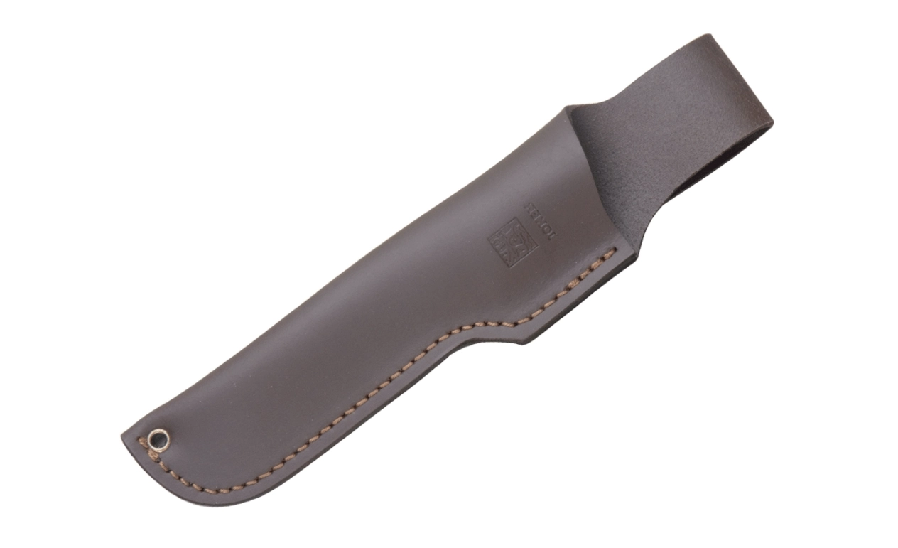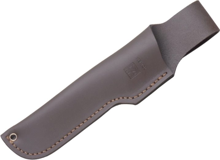 La poignée en véritable bois de cervidé tient fermement en main et offre une prise naturelle et antidérapante. La garde métallique protège les doigts pendant le travail et augmente la sécurité. Un étui solide en cuir, prévu pour le port à la ceinture, est inclus afin d’avoir le couteau toujours à portée de main.