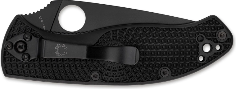 Couteau EDC de taille moyenne Spyderco Tenacious Lightweight Black offrant des performances fiables au quotidien. Il dispose d’un tranchant partiellement dentelé en acier 8Cr18MoV avec une finition noire mate, d’une ouverture confortable via un trou dans la lame et d’un verrou Linerlock sécurisé. La poignée FRN légère avec un clip de poche robuste assure une prise en main sûre et un port facile.