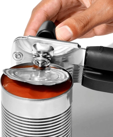 Ouvre-boîtes fiable avec une roue de coupe en acier inoxydable tranchante, des poignées antidérapantes et confortables et un grand mécanisme rotatif pour une ouverture facile et sans effort. Il comprend également un décapsuleur intégré.