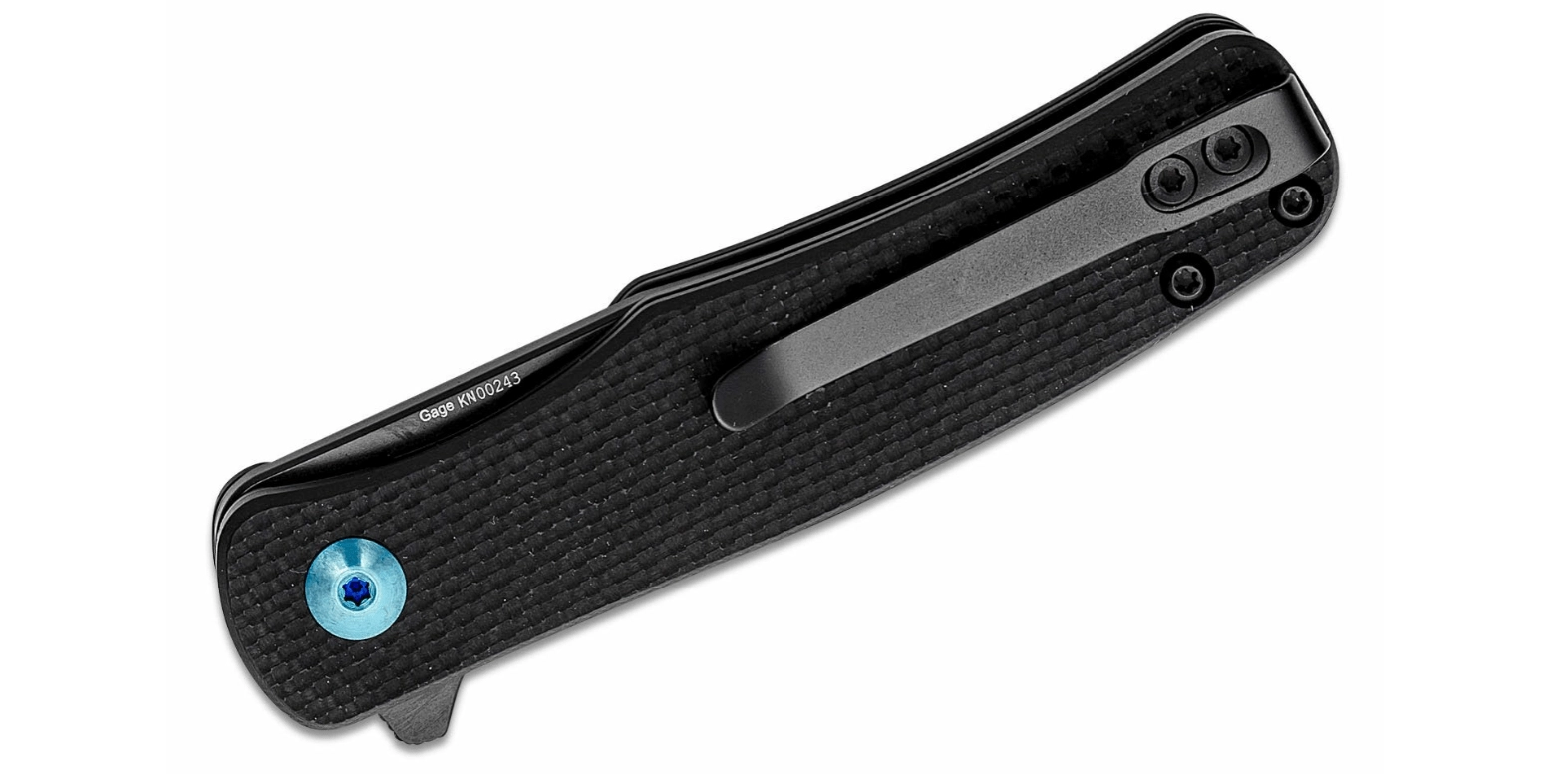 La poignée en G10 d’un élégant noir est robuste, antidérapante et agréablement profilée pour une prise en main sûre. Grâce au clip intégré, le couteau se porte facilement et discrètement dans la poche, à la ceinture ou au bord d’un sac à dos.