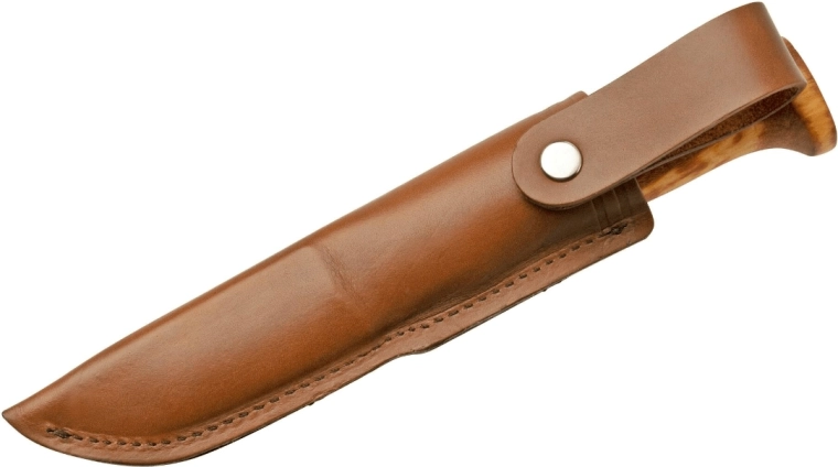 La lame fixe en acier inoxydable Sandvik 12C27 à tranchant lisse assure une tenue de coupe fiable, une résistance à la corrosion et un affûtage aisé sur le terrain. Le manche en bouleau madré, affûté, poli et huilé à la main à partir d’une seule pièce, confère au couteau un caractère unique et une apparence naturelle. Un étui en cuir pour un port en toute sécurité est inclus.