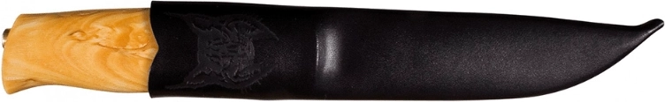 Le manche en une seule pièce de bouleau madré est poncé, poli et huilé à la main – il tient naturellement en main, ne glisse pas et chaque pièce présente un veinage du bois unique. Un étui en cuir est inclus pour un port sûr et élégant à la ceinture.