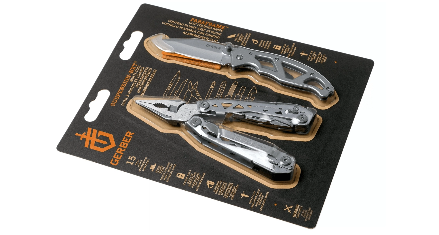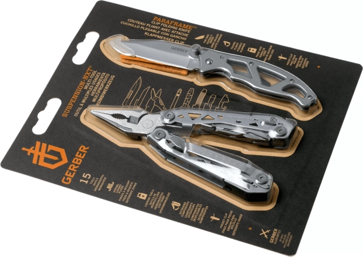 Le set GERBER Suspension NXT & Paraframe combine une pince multifonction robuste avec 15 outils et un couteau de poche élégant à lame lisse. Les deux outils sont fabriqués en acier inoxydable, offrant une longue durée de vie, un entretien aisé et une fiabilité en toute situation. Grâce au clip de poche, vous les aurez toujours à portée de main – au travail, en déplacement comme lors d’activités de plein air.