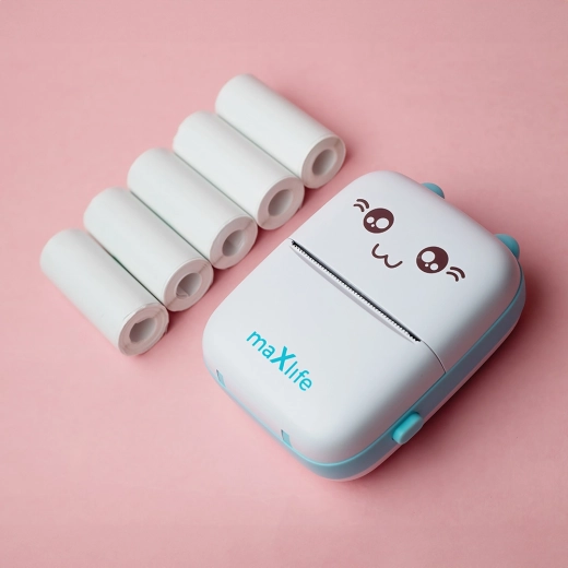 Imprimante thermique Maxlife MXTP-100 Blue compacte et facile à transporter permettant une impression instantanée sans encre directement depuis un smartphone. Grâce au Bluetooth 4.0 et à l’application FunPrint, imprimez rapidement des photos, notes, étiquettes et autocollants en noir et blanc. Le coffret comprend en plus 5 rouleaux de papier thermique pour une utilisation prolongée.