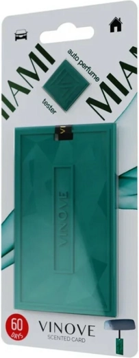 Élégante carte parfumée suspendue VINOVE Miami au design original inspiré des cristaux naturels, qui parfume la voiture, le bureau et la maison. Grâce à un polymère spécial, elle diffuse son parfum jusqu’à 60 jours et offre un arôme unique alliant la fraîcheur des agrumes siciliens et de la bergamote à une élégance vanillée-musquée et une touche de peau dorée par le soleil.