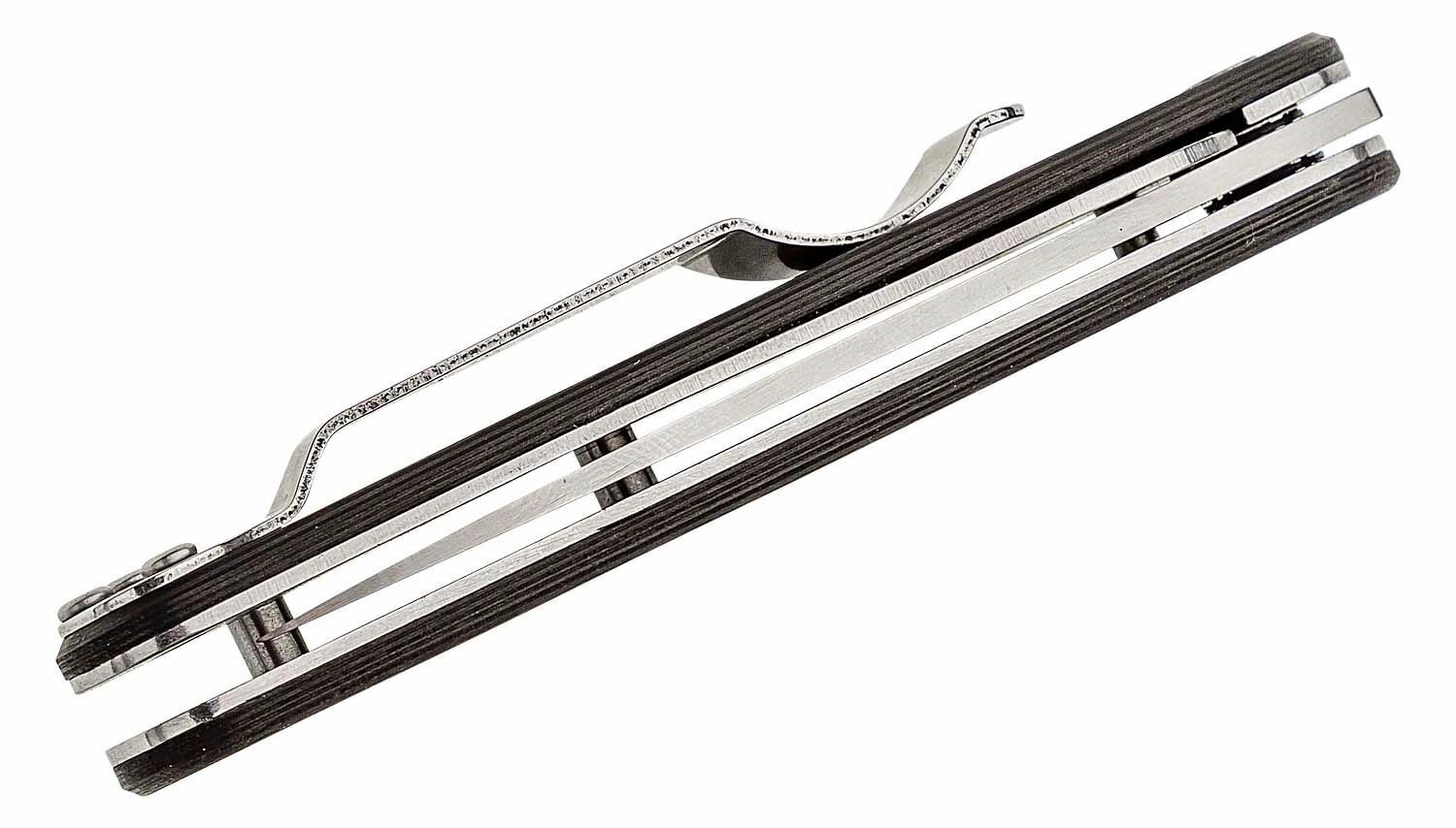 La poignée en fibre de carbone offre une prise ferme, légère et confortable. Le clip de poche pratique maintient le couteau en sécurité au bord de la poche, tandis que le trou pour lanyard permet d’attacher du paracorde ou un pendentif. Son design minimaliste et ses matériaux de qualité en font un excellent outil EDC pour la ville comme pour la nature.