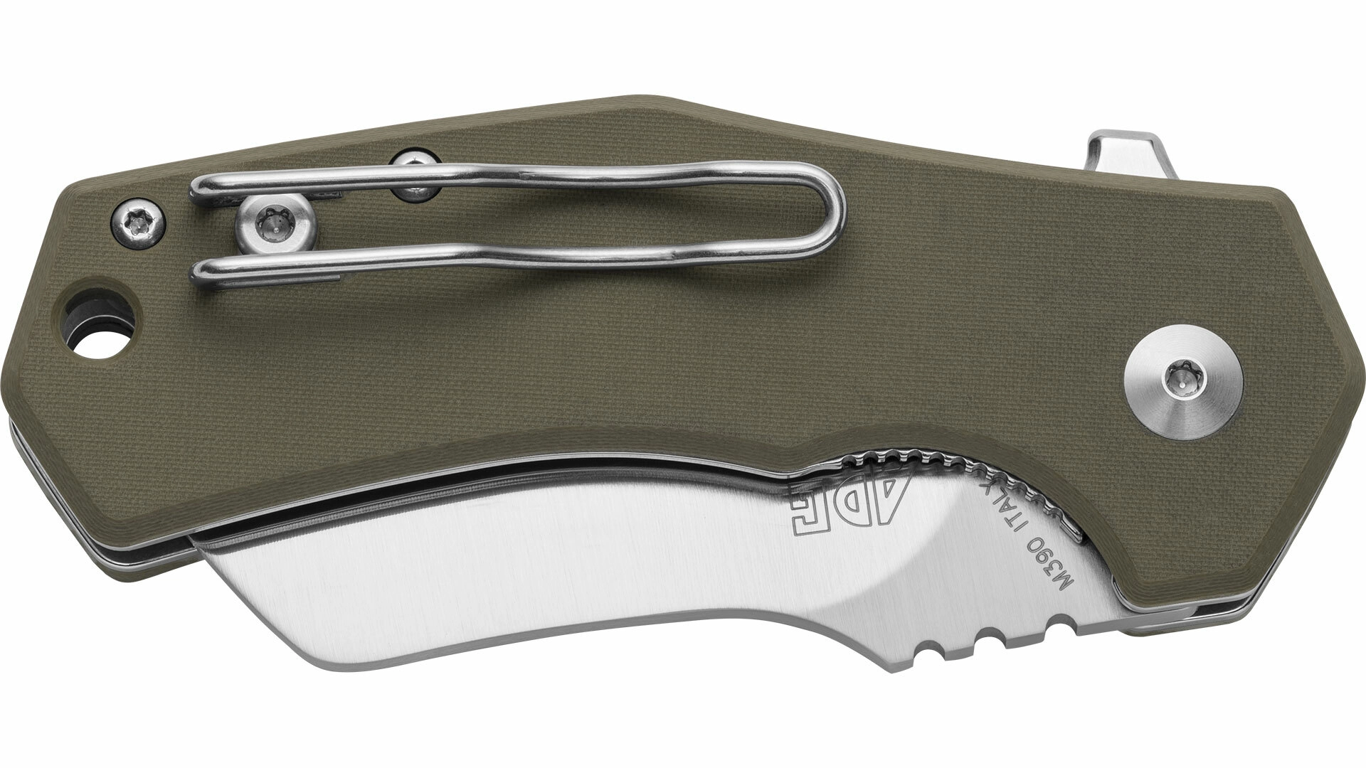 La lame de type Sheepsfoot en acier inoxydable premium Böhler M390 avec finition satinée se distingue par une excellente tenue de coupe et une grande résistance à la corrosion. Le flipper assure une ouverture rapide et fluide à une main, tandis que le verrou Liner Lock garantit la sécurité à l’usage. La poignée texturée en G10, en finition verte, tient fermement en main et offre une haute durabilité même dans des conditions plus exigeantes. Le clip de poche pratique et l’orifice pour cordon facilitent le port et l’adaptation à votre équipement.