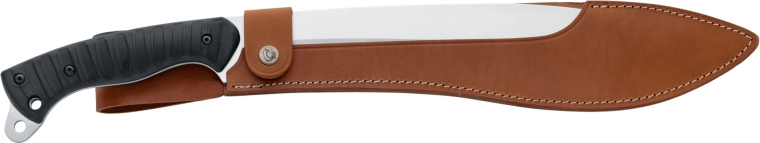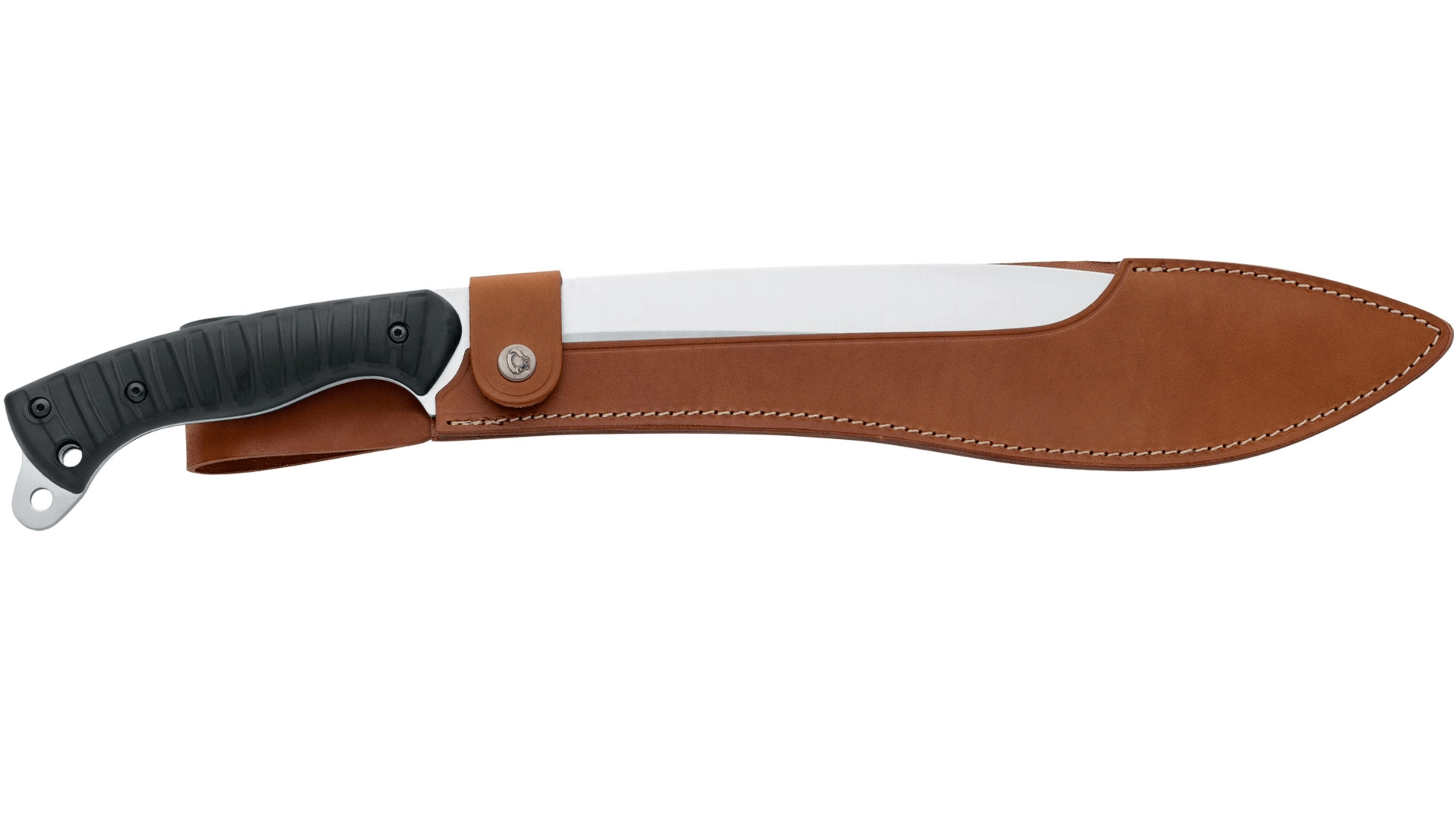 La poignée en FRN (nylon renforcé de fibres de verre) avec caoutchouc laminé offre une prise sûre et antidérapante même en conditions humides. Le matériau est résistant à l’eau, aux produits chimiques et à l’usure mécanique, ce qui le rend adapté à une utilisation prolongée sur le terrain. L’étui en cuir fourni permet un port sûr et confortable à la ceinture.