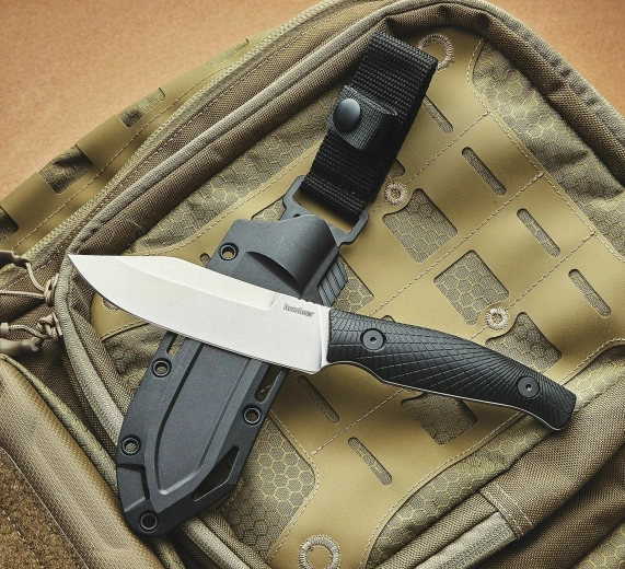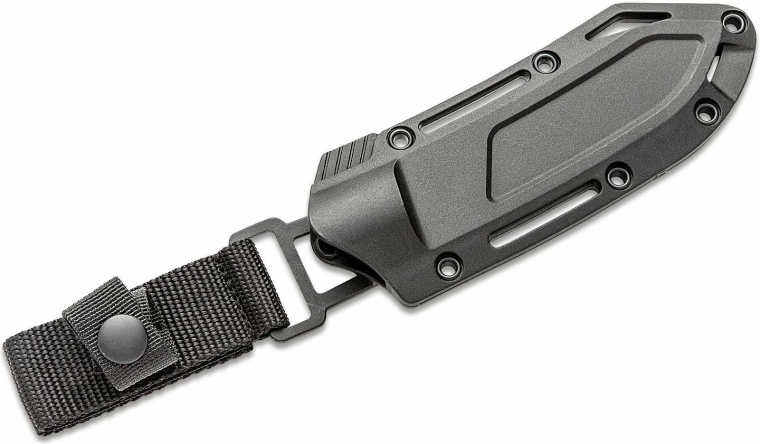 La poignée ergonomique en FRN avec une texture fraisée de précision assure une prise sûre même sous la pluie ou avec des gants. L’étui FRN moulé, offrant plusieurs options de montage et une sûreté en nylon, fixe solidement le couteau et permet un port confortable et sécurisé sur le terrain.