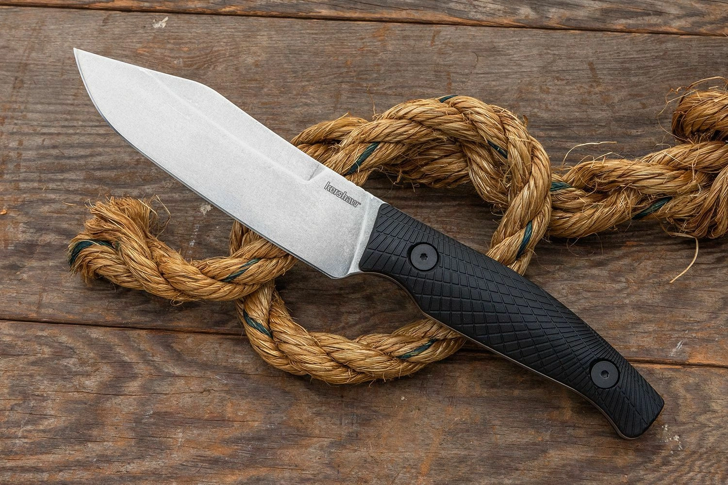 Kershaw Camp 5 couteau outdoor fixe D2 avec finition stonewash, poignée FRN et étui