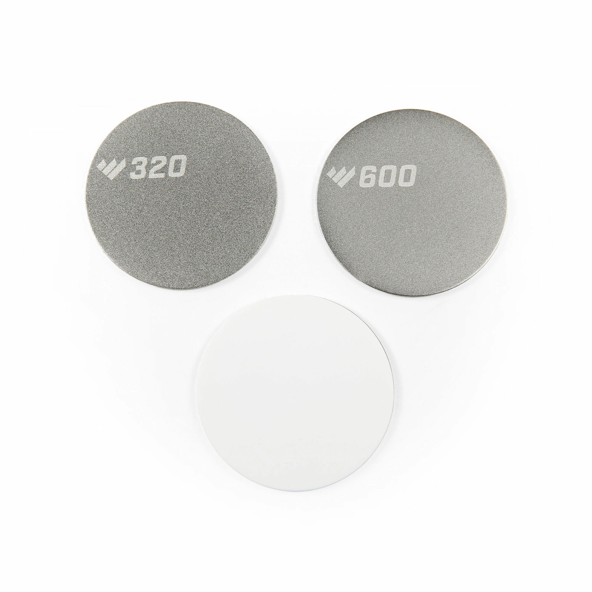 Disques diamantés grain 320 et 600 pour un redressage rapide et un réaffûtage, complétés par un honage fin en céramique.