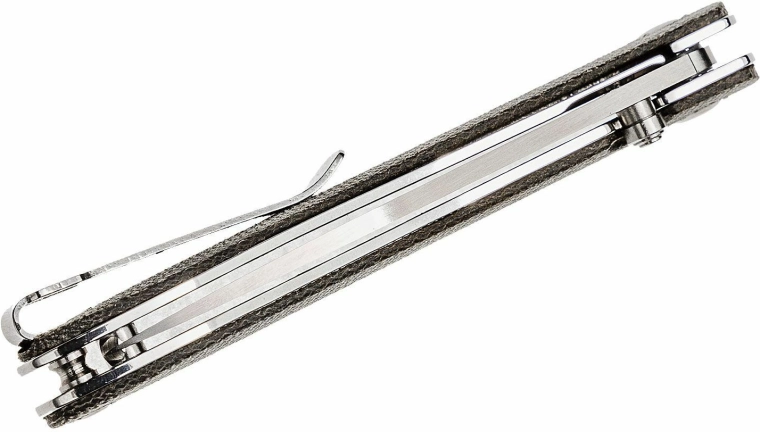Élégant et facile à manipuler, le couteau de poche CJRB Ria pour le port quotidien (EDC) séduit par sa lame à finition satinée en acier AR-RPM9, son ouverture fluide sur roulements céramiques et son Liner Lock sûr. La micarta verte texturée offre une prise en main sûre et le clip de poche facilite un port discret.