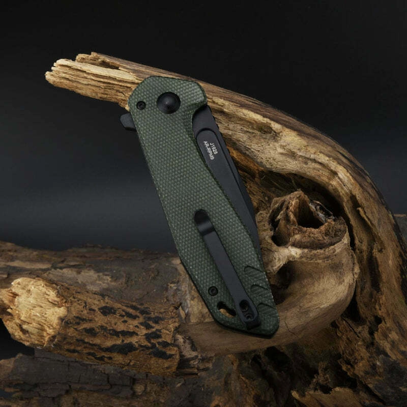 Vous cherchez un couteau durable et fiable pour le port quotidien comme pour des travaux plus durs ? Le CJRB Riff Green combine des matériaux haut de gamme et une ergonomie étudiée. La lame en acier inoxydable fritté AR-RPM9 avec revêtement PVD noir offre une excellente capacité de coupe, une résistance à la corrosion et une maintenance aisée. Grâce aux roulements à billes, le couteau s’ouvre rapidement et en douceur via le flipper, tandis que le verrou Button Lock maintient la lame solidement en place.
