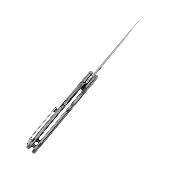 Élégant couteau pliant au design futuriste par Jonathan Militaw, combinant acier premium S35VN avec finition Stonewash, verrou fiable Framelock et poignée légère en titane et micarta. L’ouverture est fluide grâce à l’ouverture par trou de pouce et au front flipper, sans oublier le clip titane 3D pour un port droit confortable.