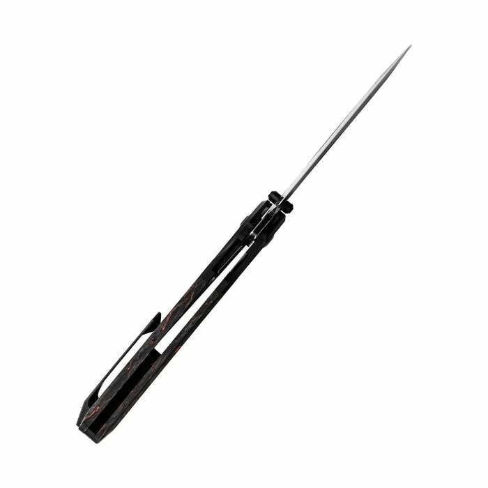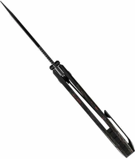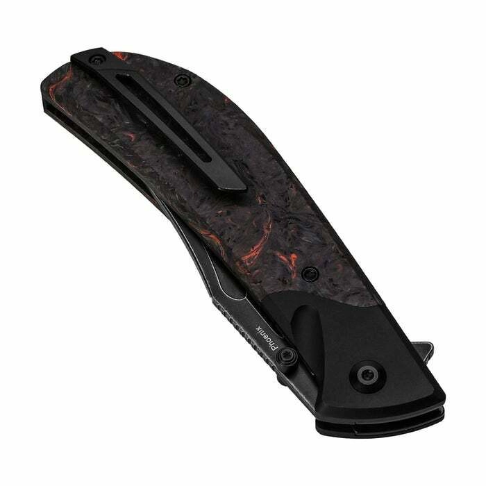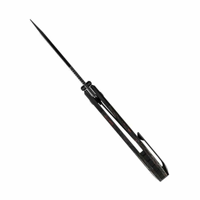 L’ouverture est fulgurante et fluide grâce aux roulements à billes – choisissez le flipper ou l’ergot de pouce. Le Liner Lock maintient la lame solidement au travail. Le manche combine le FAT Carbon premium au motif marqué et des éléments en aluminium pour un équilibre idéal entre rigidité et poids; on retrouve aussi un clip de poche et un œillet pour cordon.