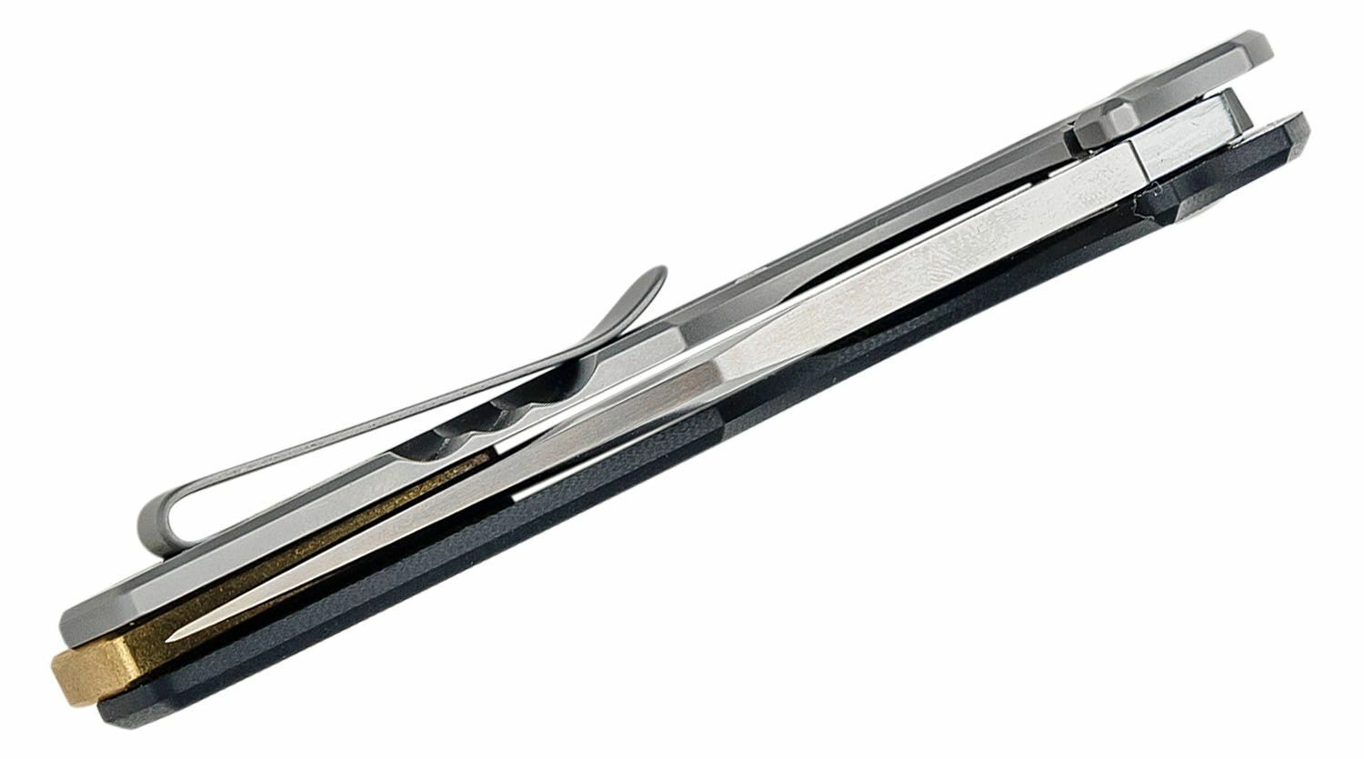 Le manche ergonomique combine du G10 texturé sur la face avant pour une prise ferme et de l’acier inoxydable côté verrou pour une durabilité maximale. On retrouve un clip de poche pour un port discret et un trou pour paracorde.