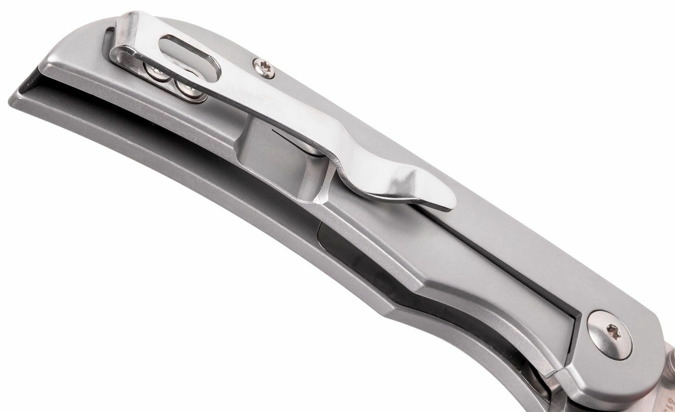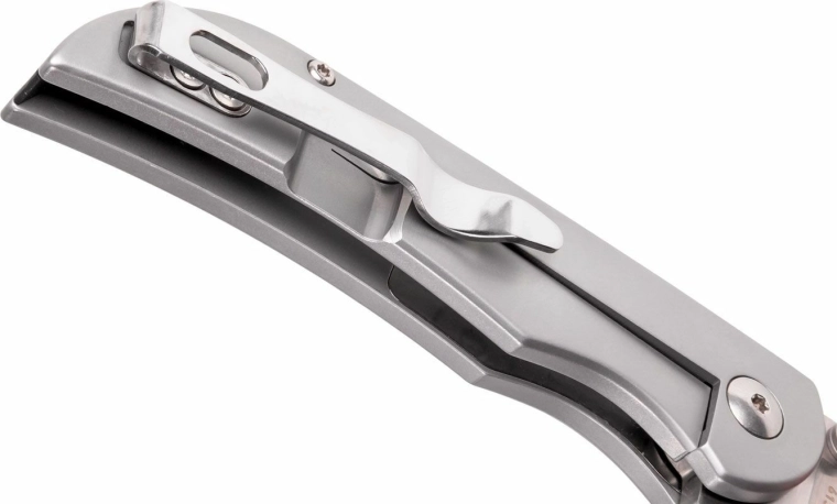 Le manche tout inox robuste à la finition mate tient parfaitement en main et le verrou Frame Lock maintient solidement la lame en service. Le clip de poche pratique permet un port discret et sûr dans la poche.