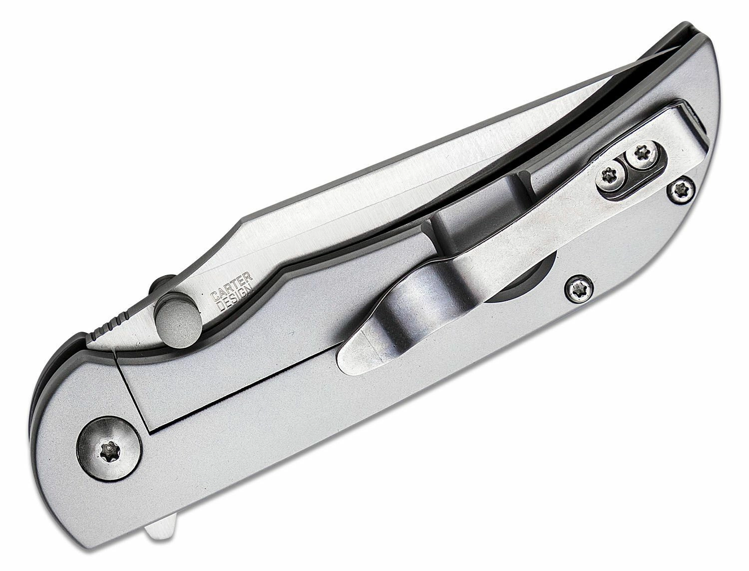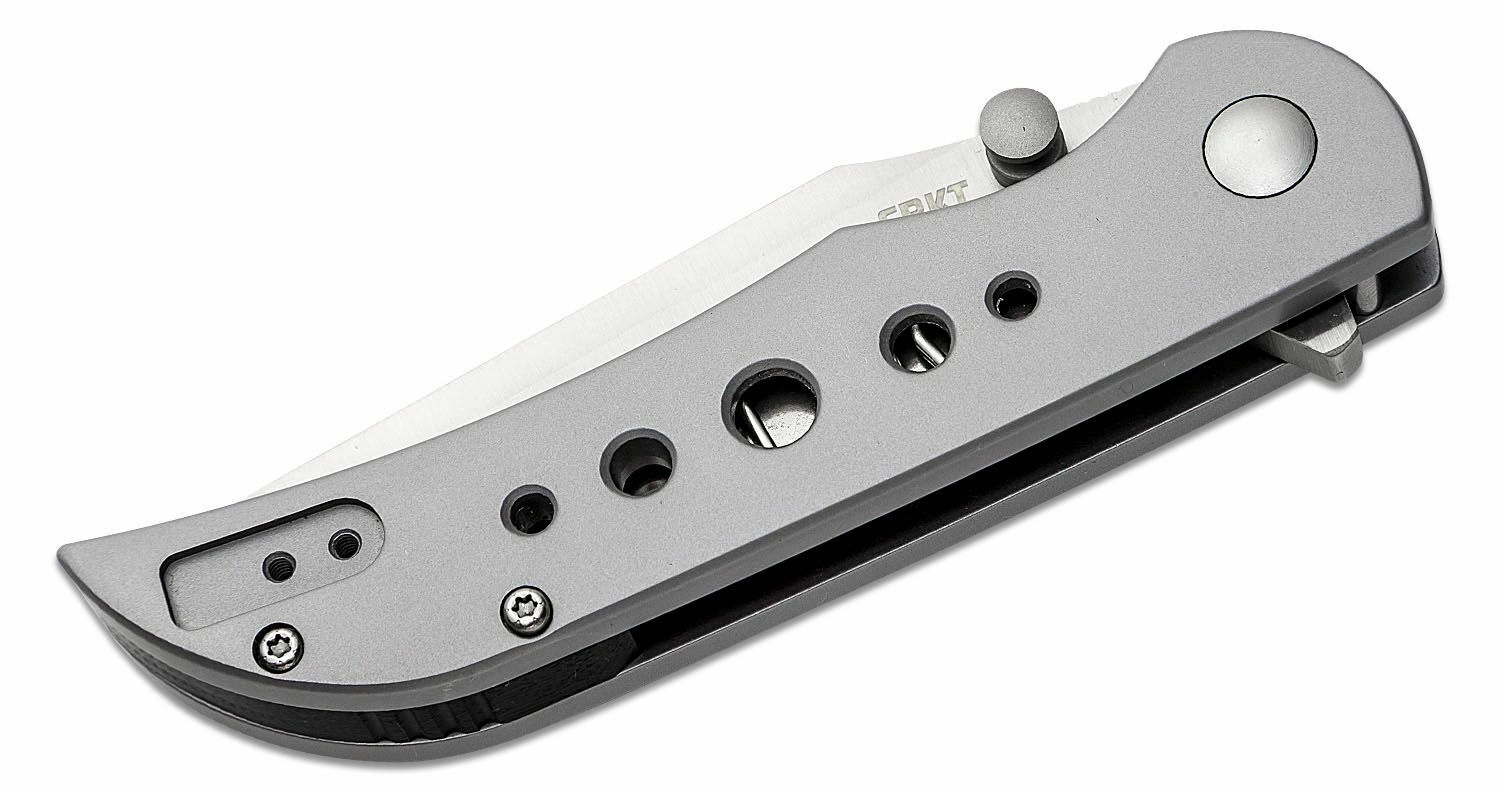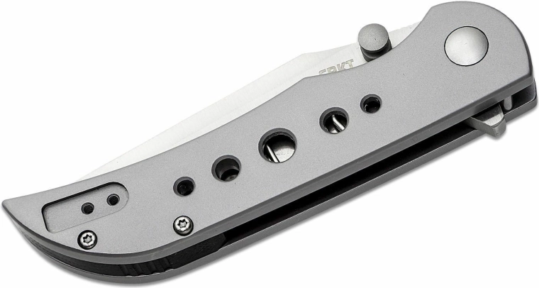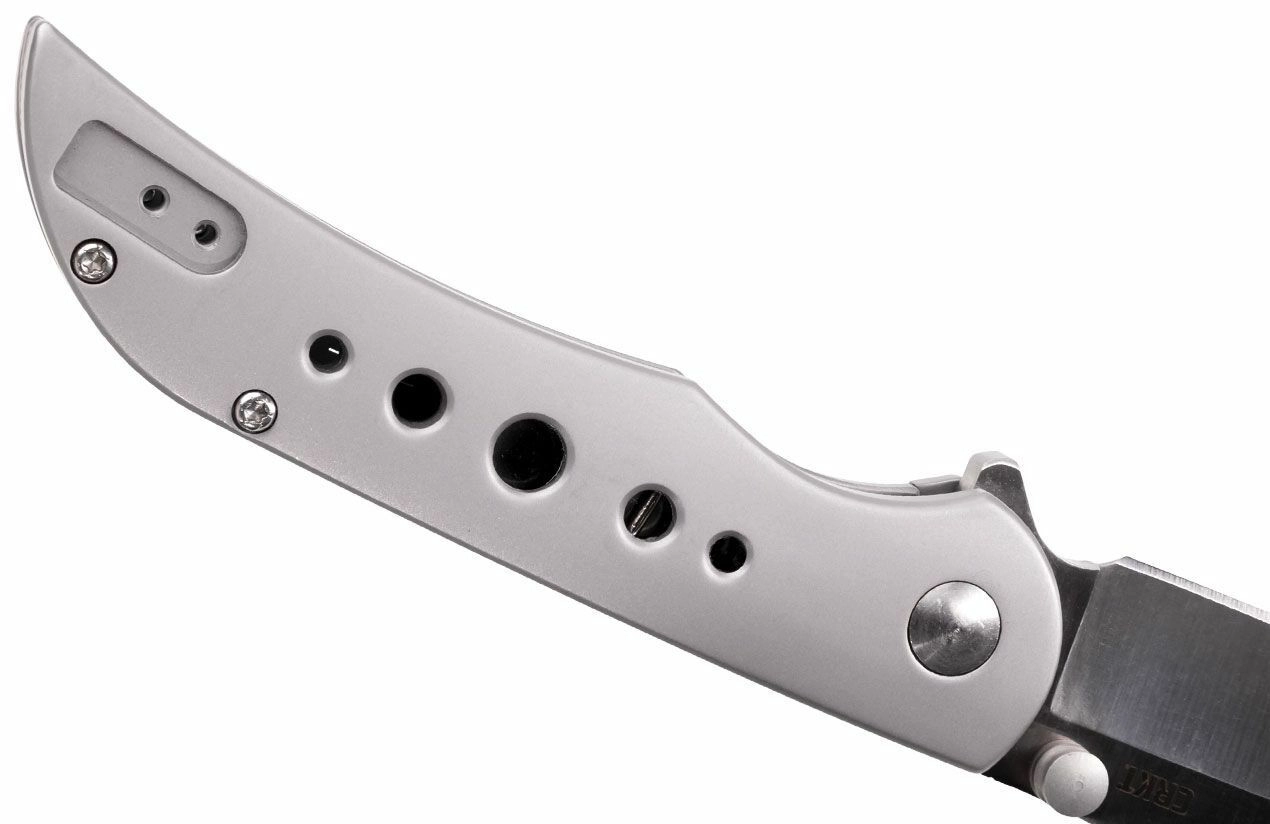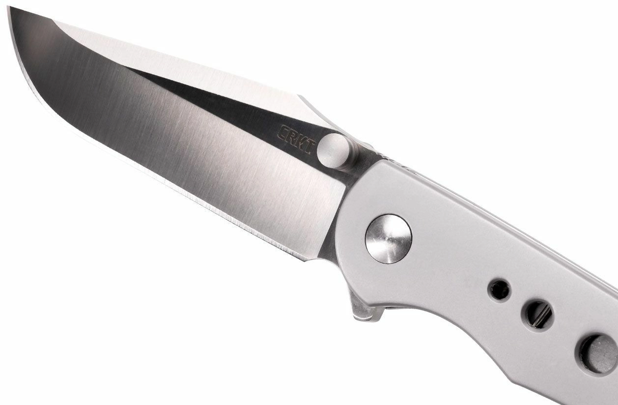 Couteau EDC compact CRKT Oxcart Silver par Robert Carter, combinant une construction tout inox robuste, une lame lisse AUS-8 avec finition satinée et une ouverture rapide à une main via flipper ou ergot de pouce. Verrou Frame Lock et clip de poche pour un port quotidien sûr et confortable.