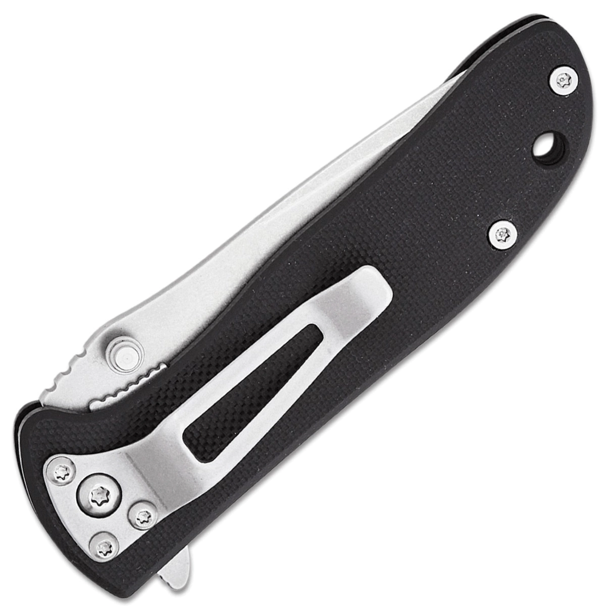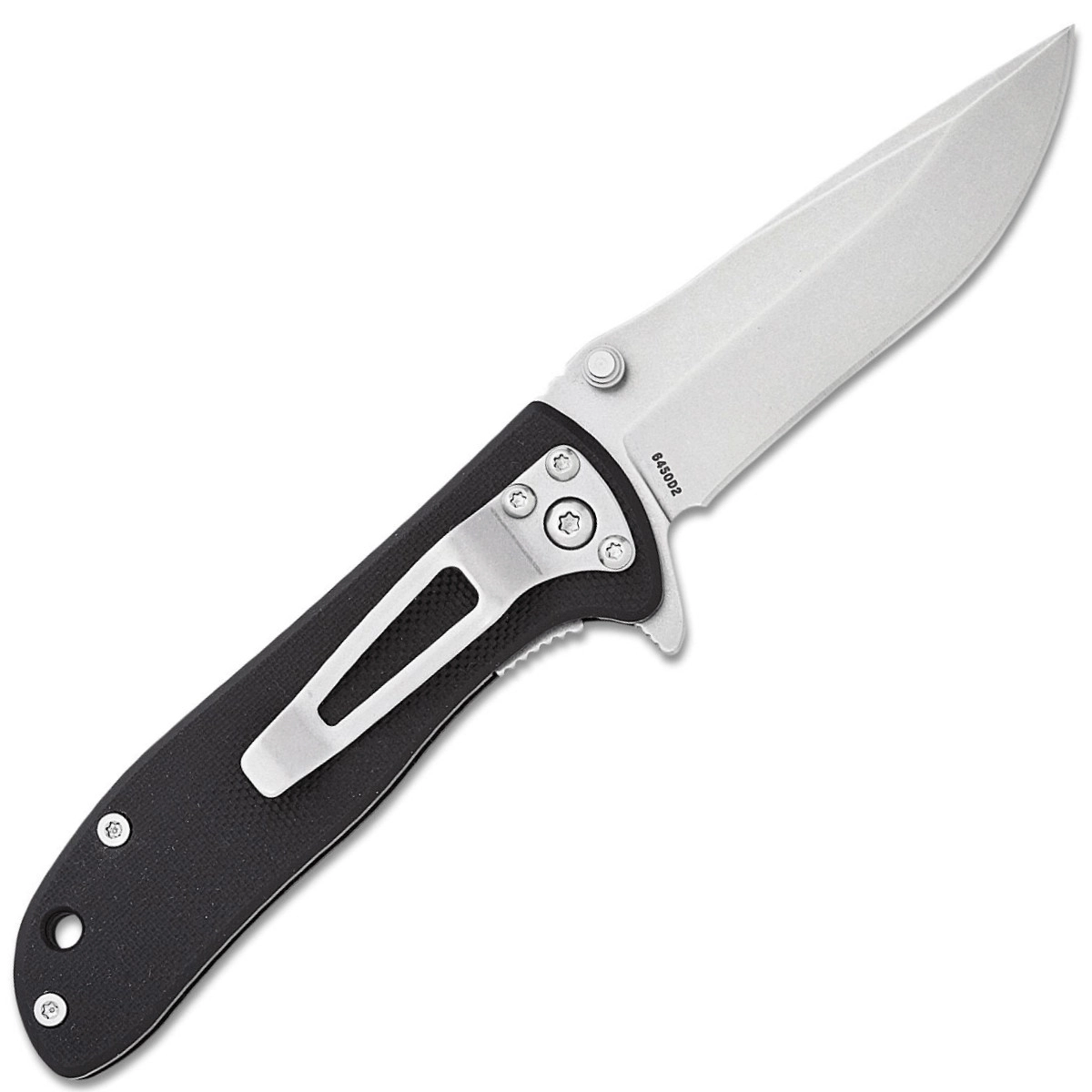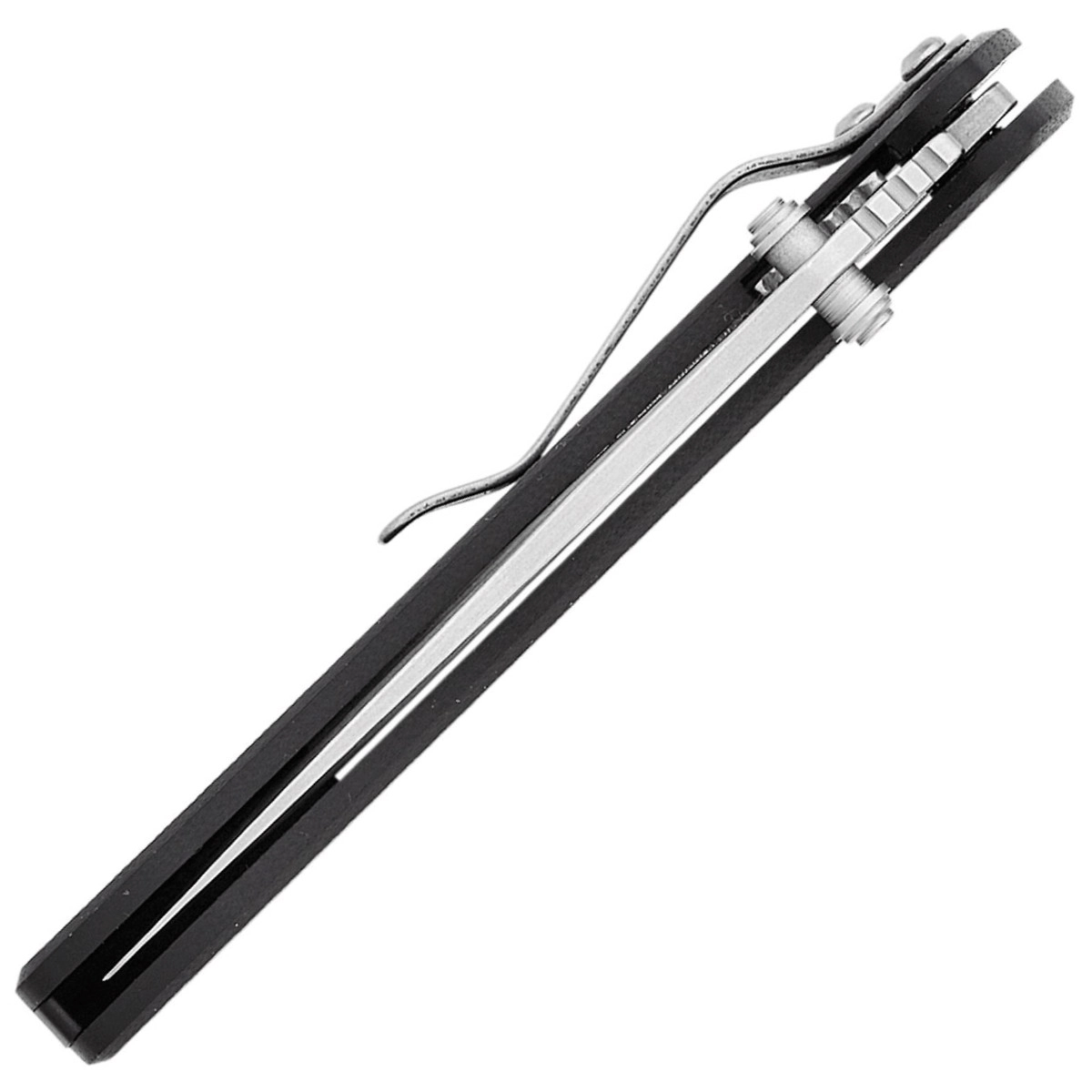 L’ouverture rapide et intuitive est assurée par le flipper et l’ergot de pouce ambidextre – choisissez ce qui vous convient le mieux. Le robuste verrou linerlock fixe fermement la lame en position de travail. La poignée ergonomique en G10 noir avec texture antidérapante tient parfaitement en main, avec un clip de poche pratique et un trou pour paracorde.