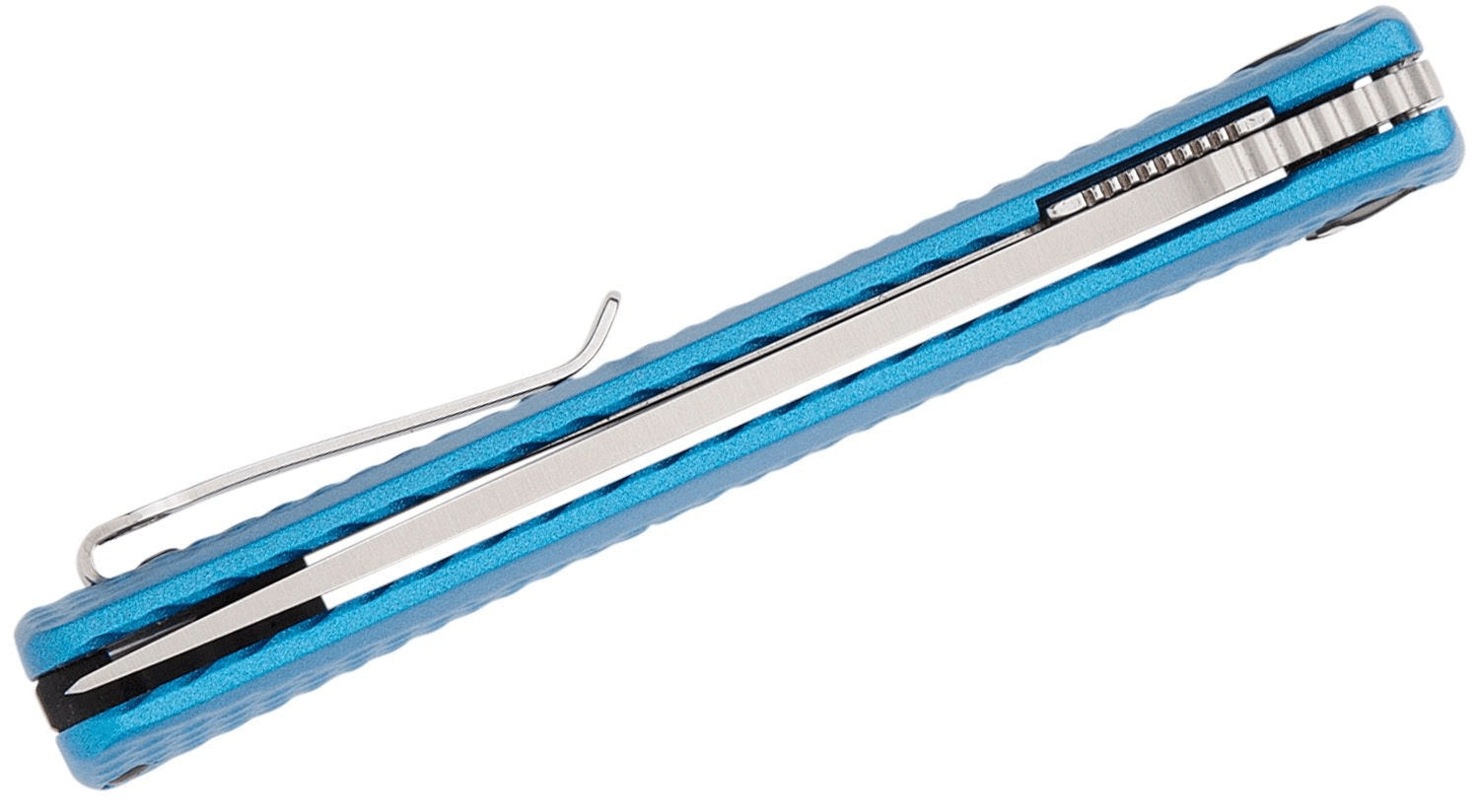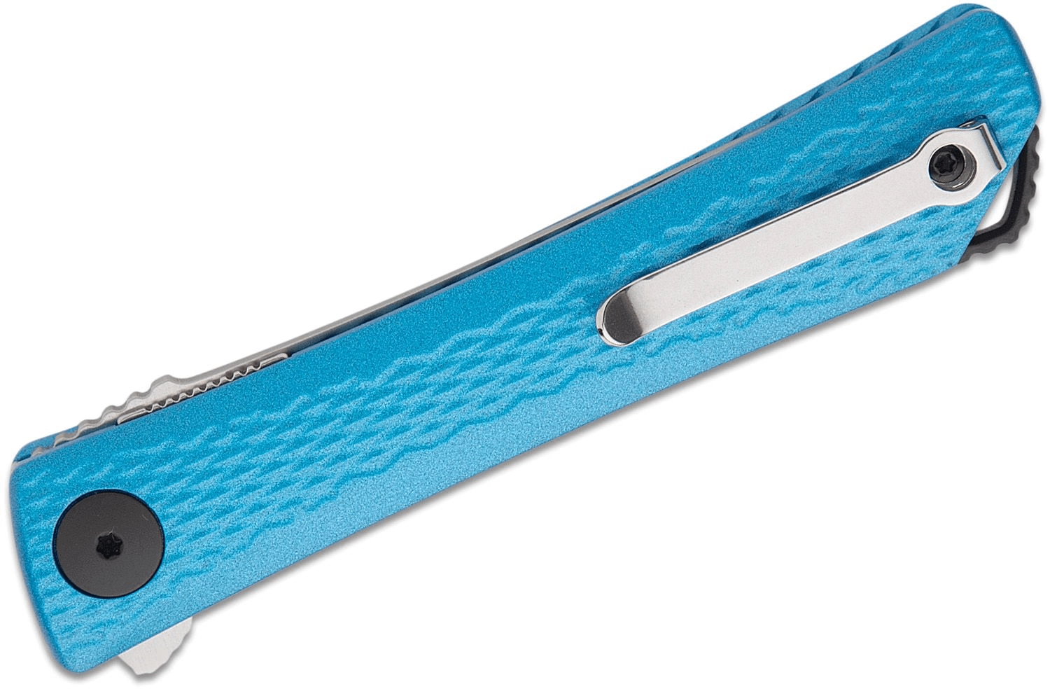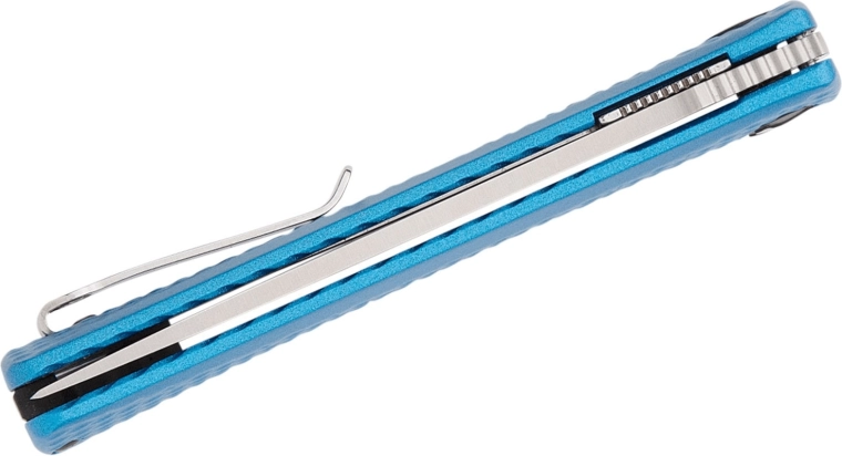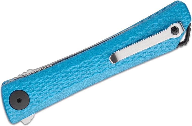 Le manche en aluminium fraisé de couleur bleue avec une texture fine procure une prise sûre et un faible poids. L’équipement pratique comprend un clip de poche pour un port discret et un trou pour cordon. Excellent choix pour l’EDC, l’ouverture d’emballages, les petits travaux et les activités en extérieur.