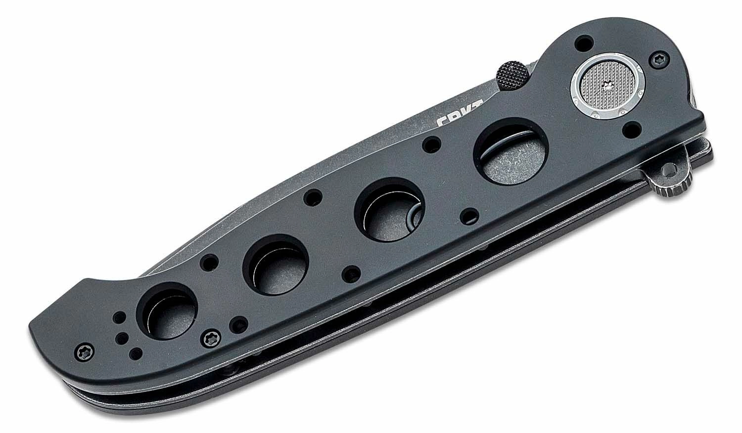 Couteau EDC robuste CRKT M16-04DB avec lame Tanto en acier D2 et finition Black Stonewash, offrant une ouverture rapide à une main et un verrouillage extrêmement solide Deadbolt. La poignée en aluminium légère avec évidements et le clip de poche en font un compagnon fiable pour le port quotidien.