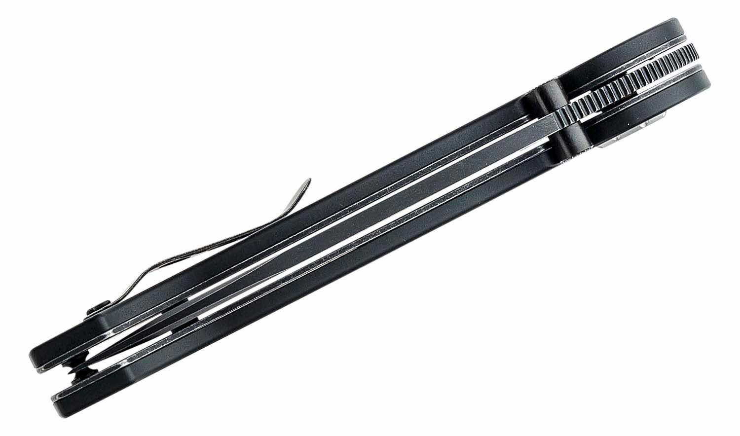 L’aluminium anodisé noir avec évidements réduit le poids sans compromis sur la solidité. Le clip de poche assure un port EDC confortable.