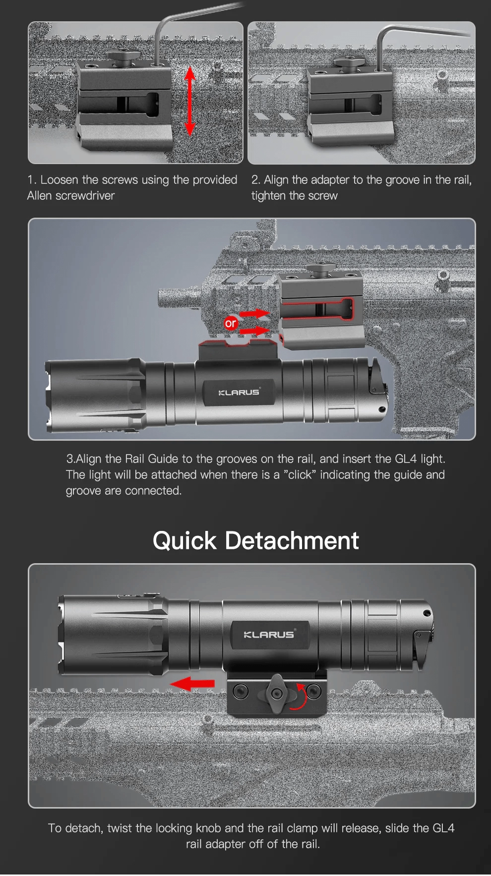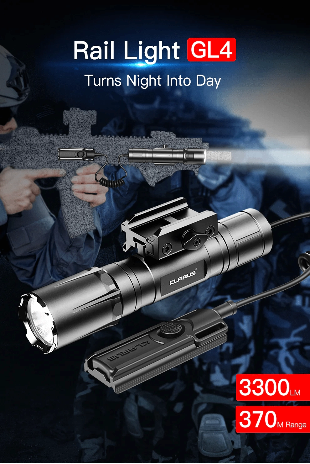 La Klarus GL4 est une lampe LED tactique robuste conçue pour le montage sur arme et les usages outdoor exigeants. Grâce à sa LED Luminus et à son réflecteur poli, elle offre une lumière blanc froid 6500K, 3300 lumens et une portée jusqu’à 370 mètres. Le double réglage tactique/outdoor et le double interrupteur permettent un accès éclair au mode TURBO et au stroboscope.
