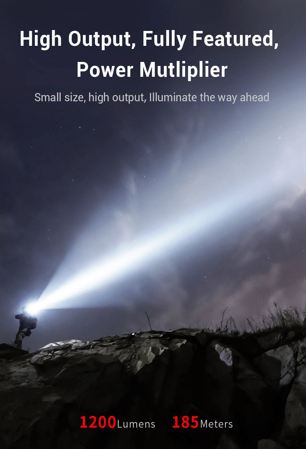 - Puissance 1200 lm et portée 185 m pour une visibilité assurée