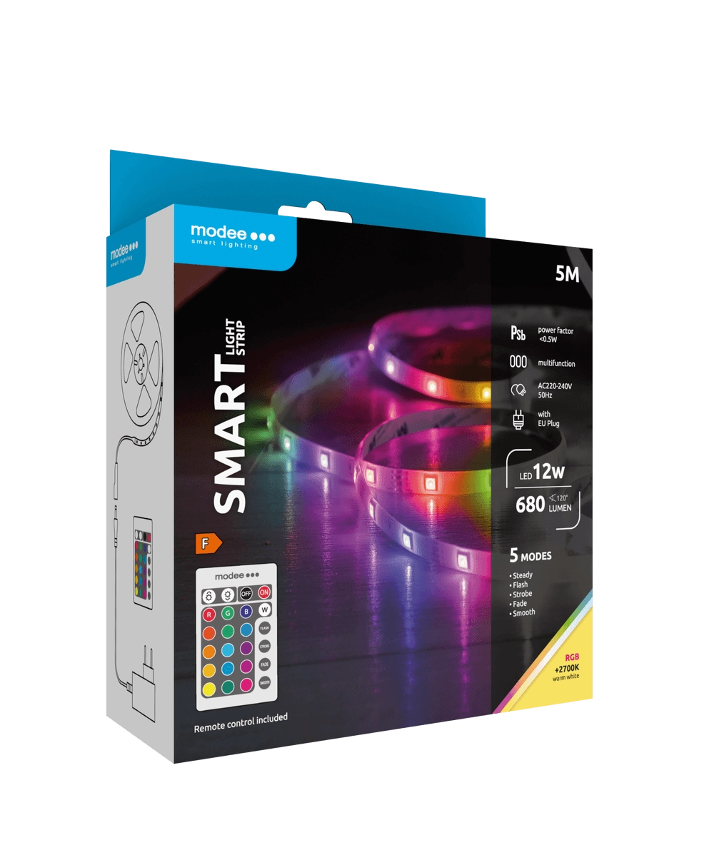 Modee LED Smart – ruban LED intelligent 12 W, 5 m, 2700K + RVB, 680 lm, IP20