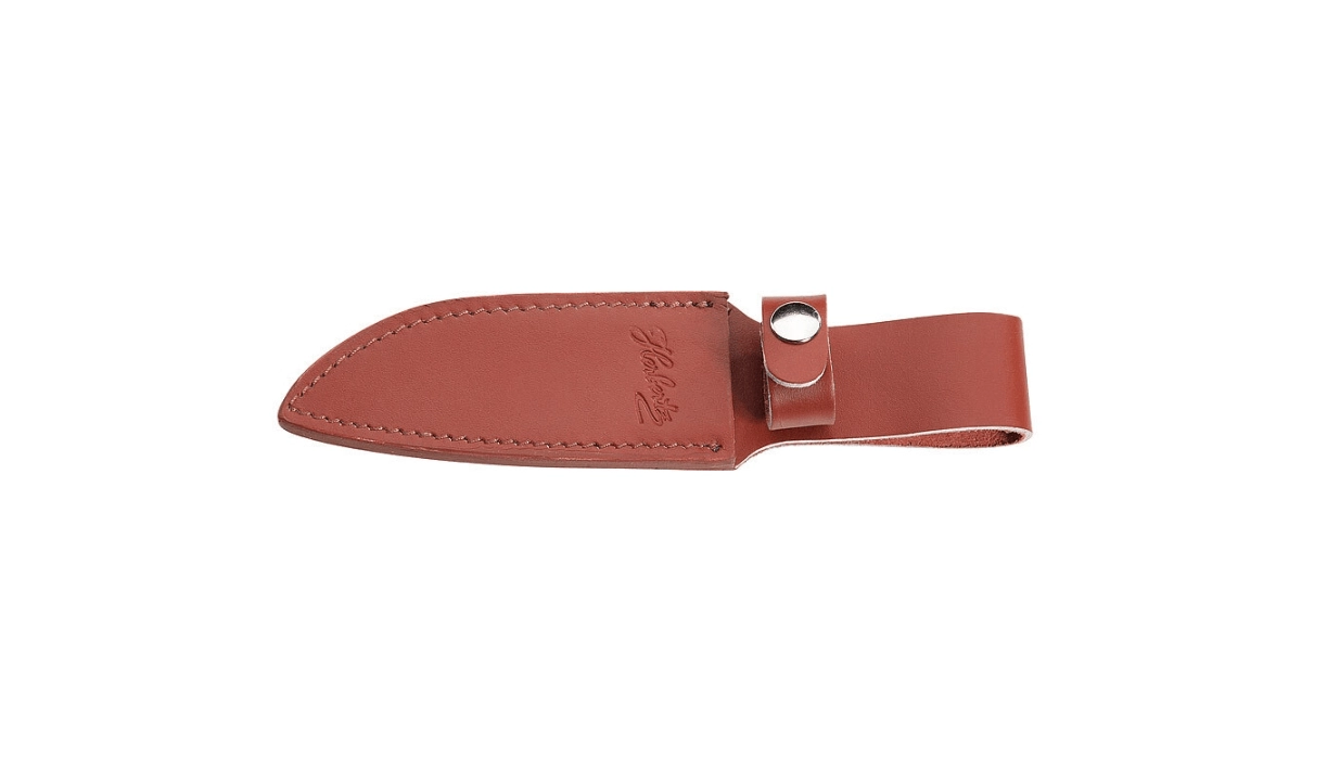 Le manche en palissandre est ergonomique et doté de rainures pour une prise en main sûre et confortable. La garde intégrée augmente la sécurité lors de l’utilisation. Le couteau est livré avec un étui en cuir de qualité pour un port sûr et élégant à la ceinture.