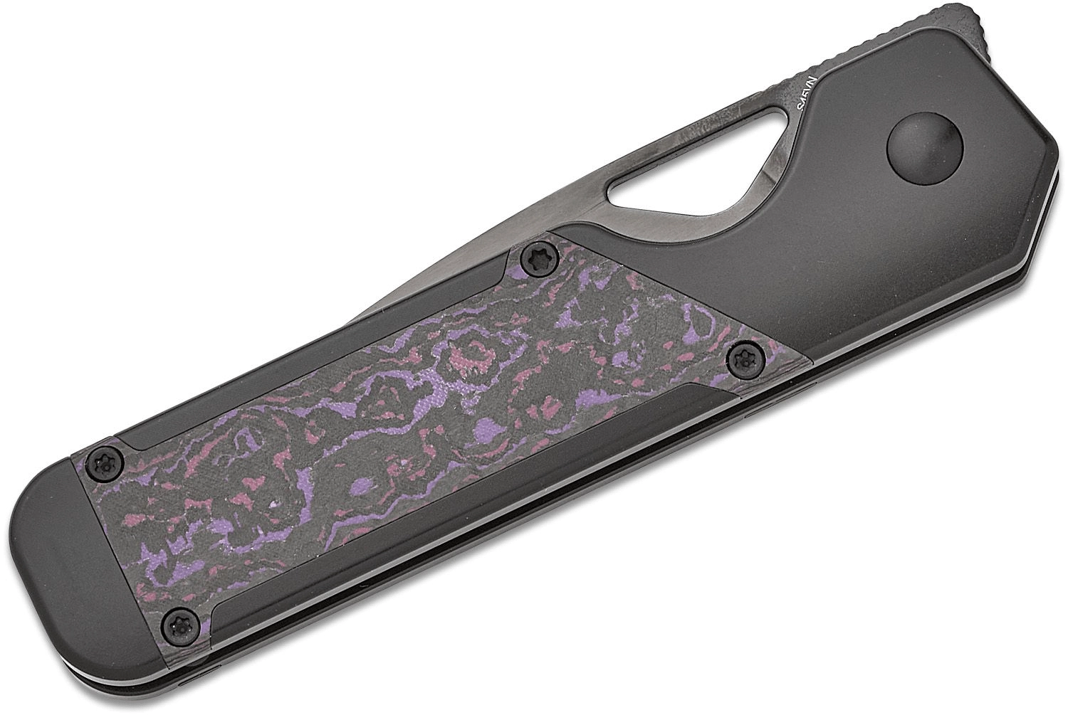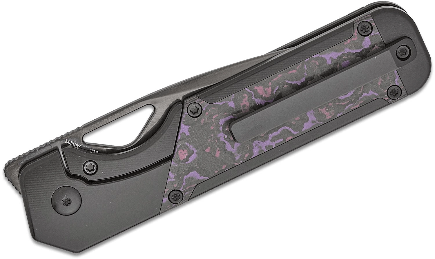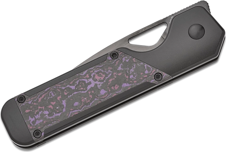 Manche en titane léger et robuste avec incrustation décorative Fatcarbon Purple Haze et clip de poche profond pour un port confortable.