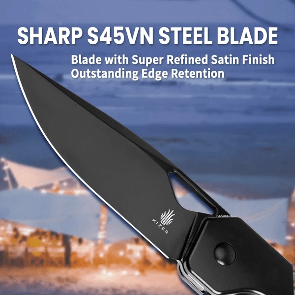 - Acier premium CPM‑S45VN – grande rétention du tranchant et entretien aisé.