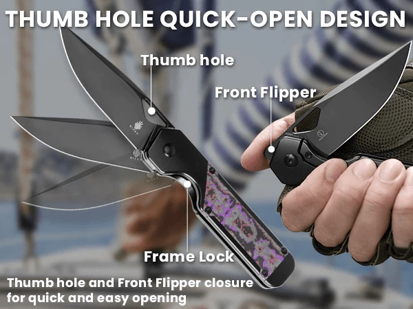 - Double mode d’ouverture – flipper et trou pour le pouce pour une mise en action rapide à une main.