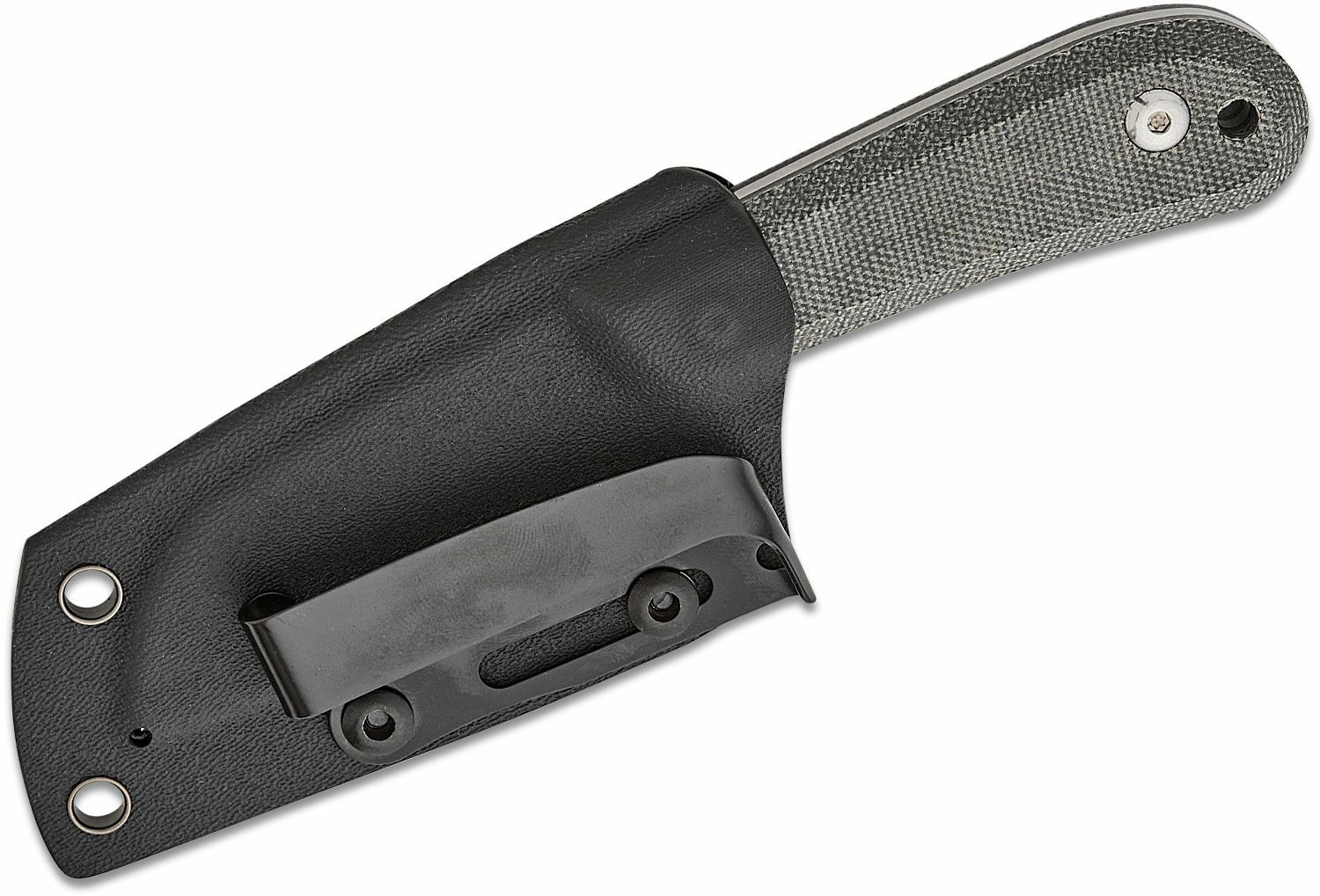 La poignée en Micarta de couleur noire avec un noyau robuste en G10 tient bien en main et assure une prise sûre même dans des conditions plus exigeantes. Un trou pratique pour cordon permet d’attacher du paracorde ou une dragonne de sécurité. L’emballage comprend un étui Kydex pour un port sûr et confortable.