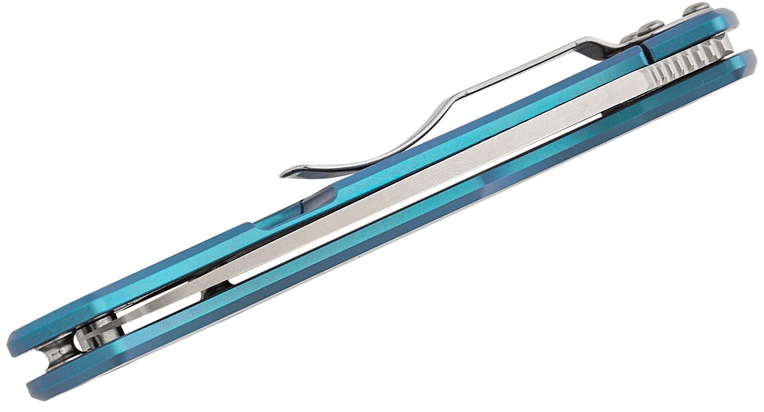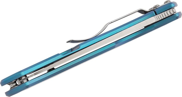 Le manche en titane bleu est léger, robuste et agréable en main. Le clip de poche peut être réglé sur quatre positions (tip-up/tip-down, droite/gauche), vous permettant d’adapter le couteau exactement à votre style de port. Le trou pour cordon à l’extrémité du manche facilite la sécurisation ou une extraction rapide de la poche.
