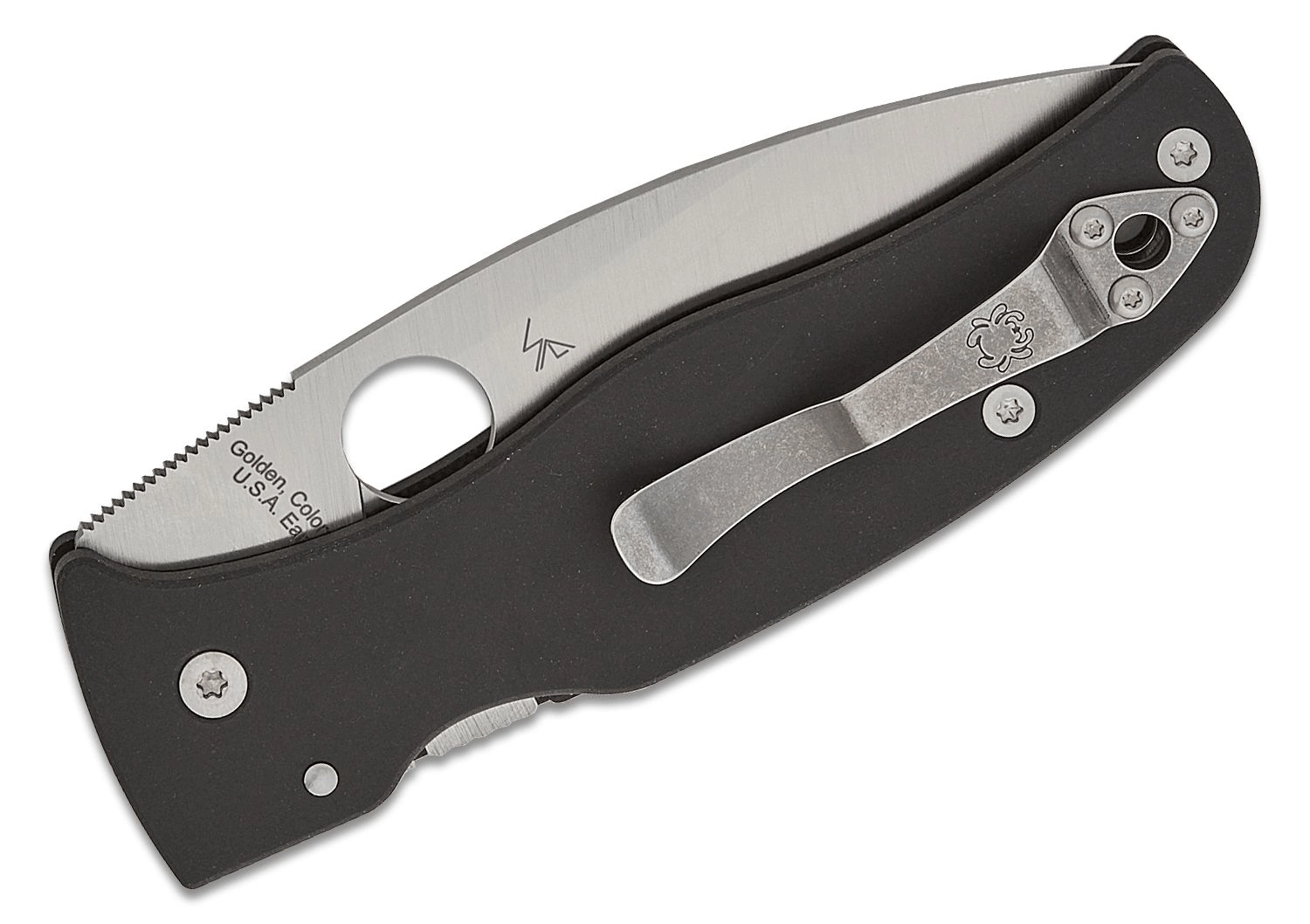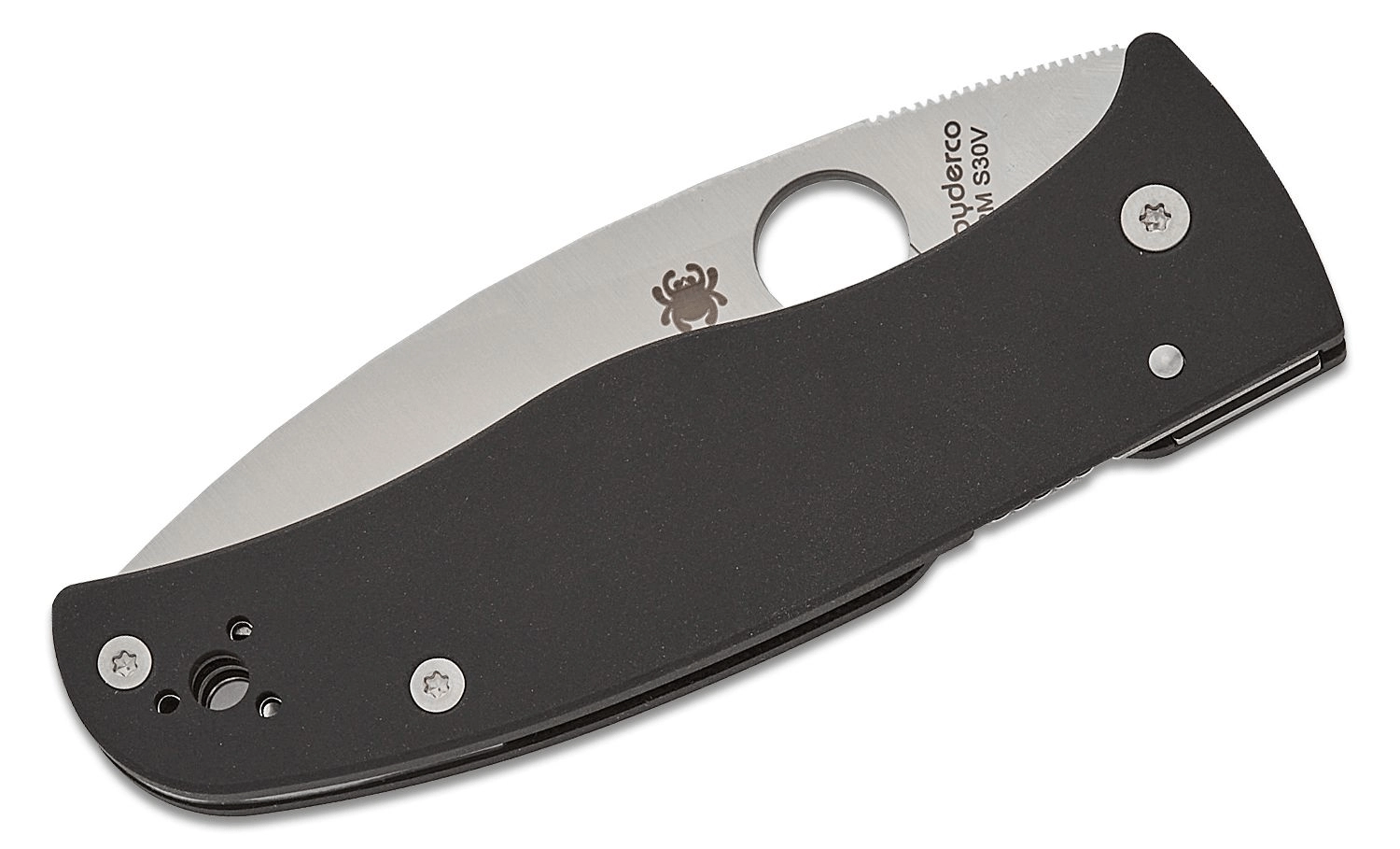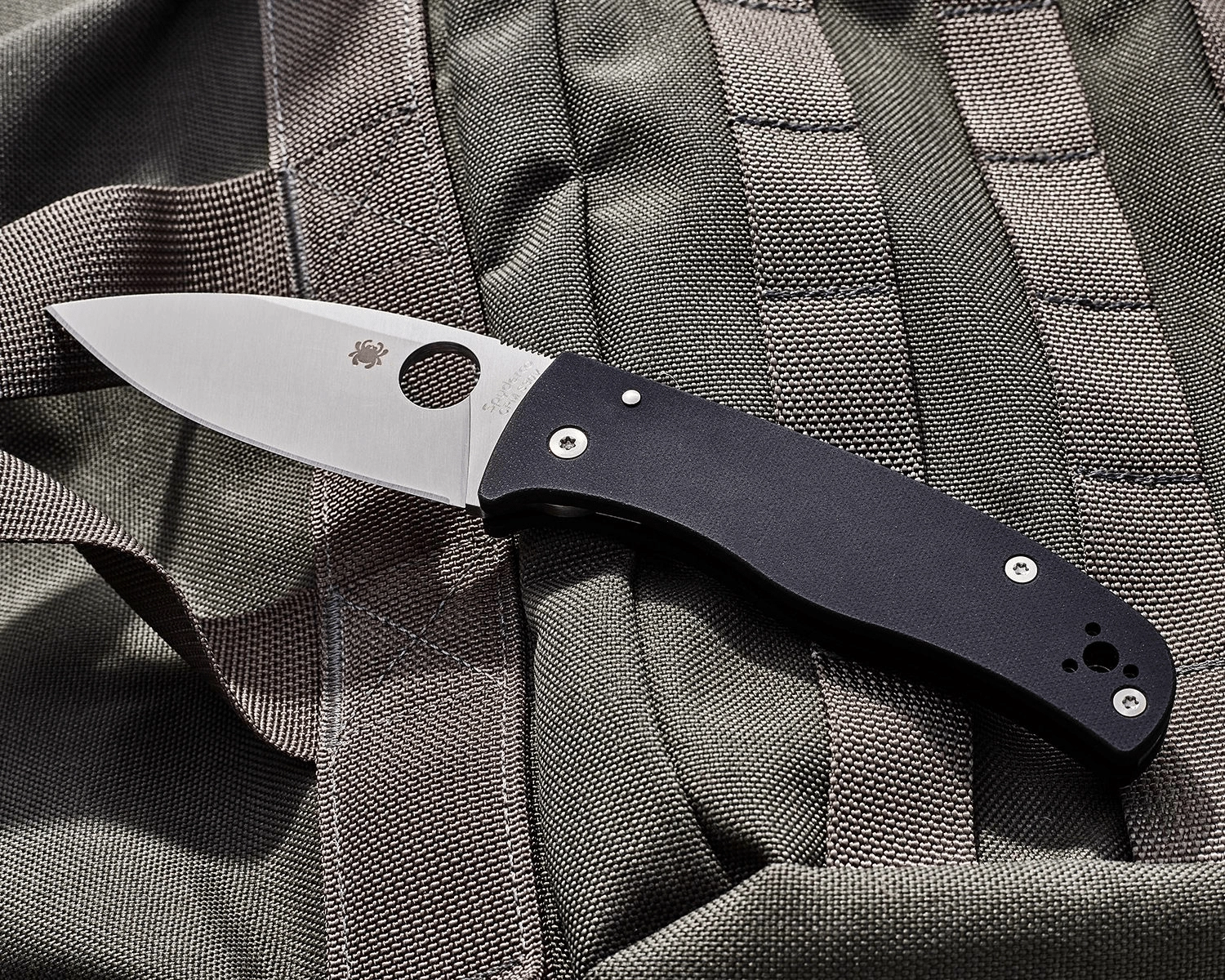 Couteau EDC premium Spyderco Bodacious conçu par Sal Glesser, doté d’une lame lisse en acier CPM S30V avec émouture plate, d’une ouverture à une main SpyderHole et d’un verrou Compression Lock sécurisé. Poignée en G10 robuste, clip de poche réversible et œillet pour paracorde en font un outil fiable pour le port quotidien.