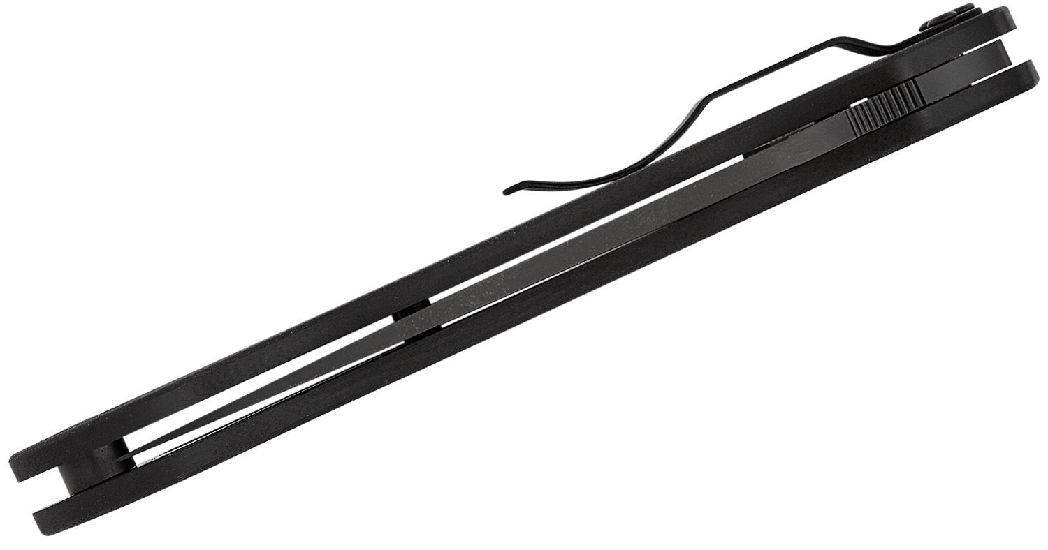 Le manche en G10 tout noir est texturé pour une prise sûre par temps sec comme humide. Le couteau s’ouvre grâce au trou dans la lame caractéristique et est sécurisé par le robuste Compression Lock pour une solidité et une sécurité maximales. Le clip de poche peut être repositionné dans quatre positions pour un port parfaitement adapté.
