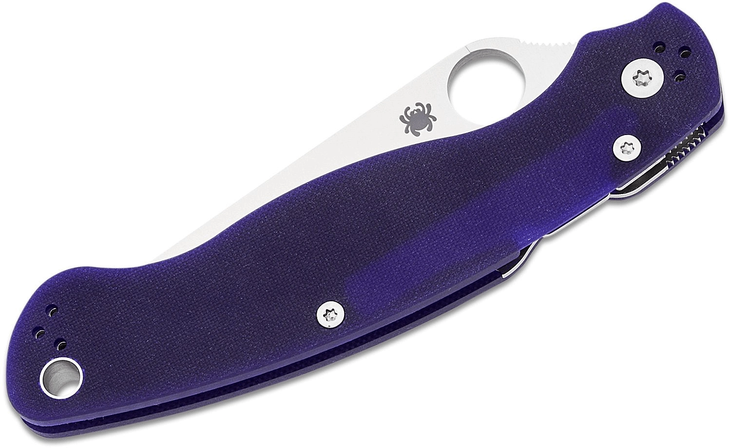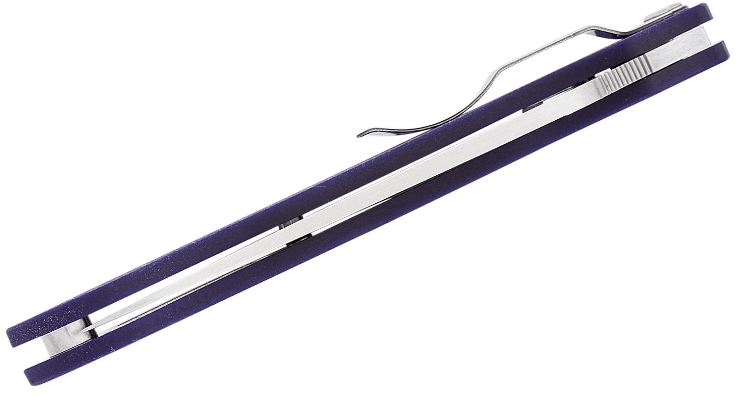 Le Compression Lock breveté augmente la solidité du verrou et assure une fermeture sûre sans avoir à mettre les doigts sur la trajectoire de la lame. Le G10 texturé de couleur bleu foncé est extrêmement résistant et garantit une prise sûre dans presque toutes les conditions.
