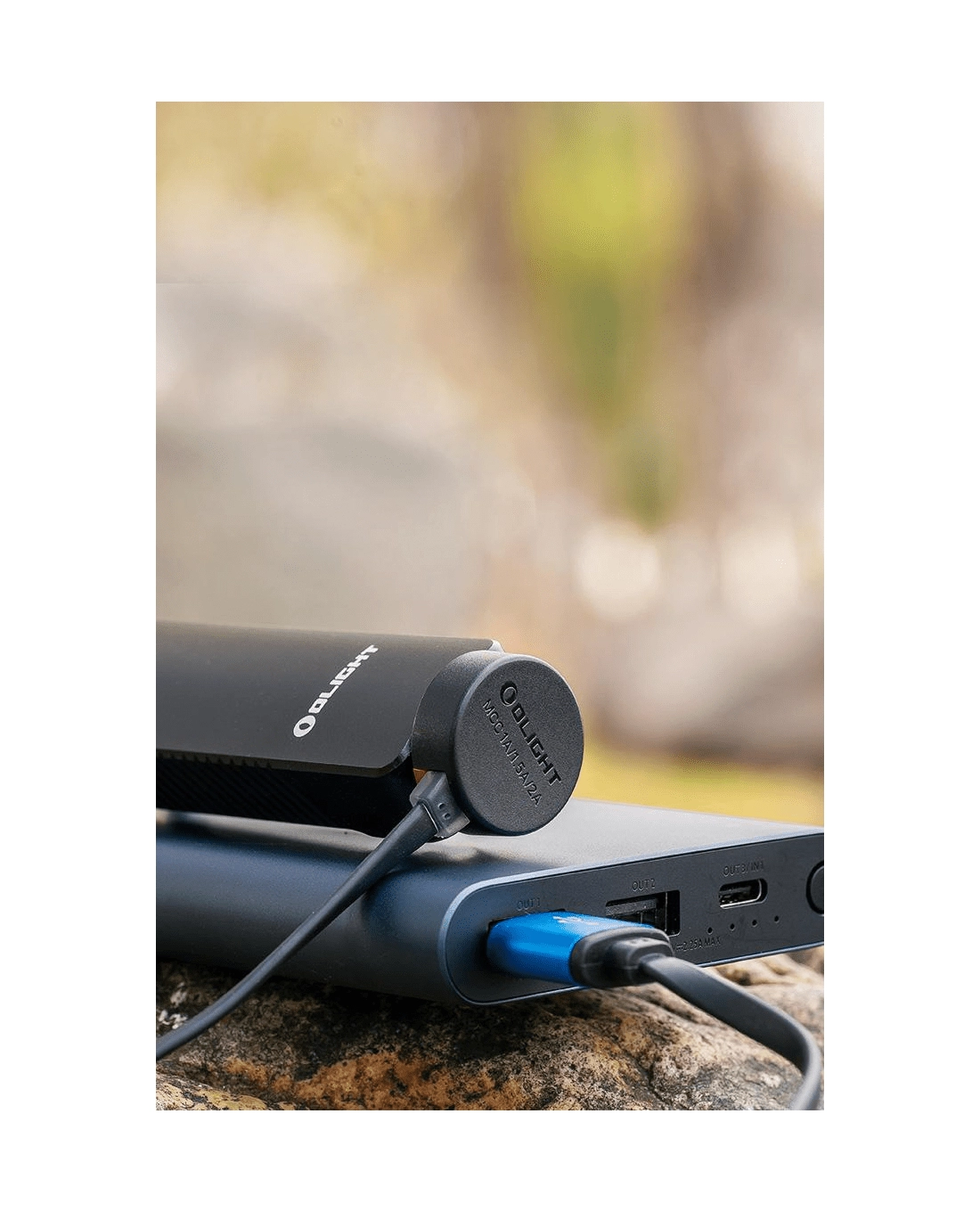 Le corps en aluminium avec protection IPX7 résiste à la pluie et aux conditions exigeantes. La batterie intégrée de 1050 mAh se recharge via le câble USB magnétique MCC1A pour un entretien quotidien aisé.