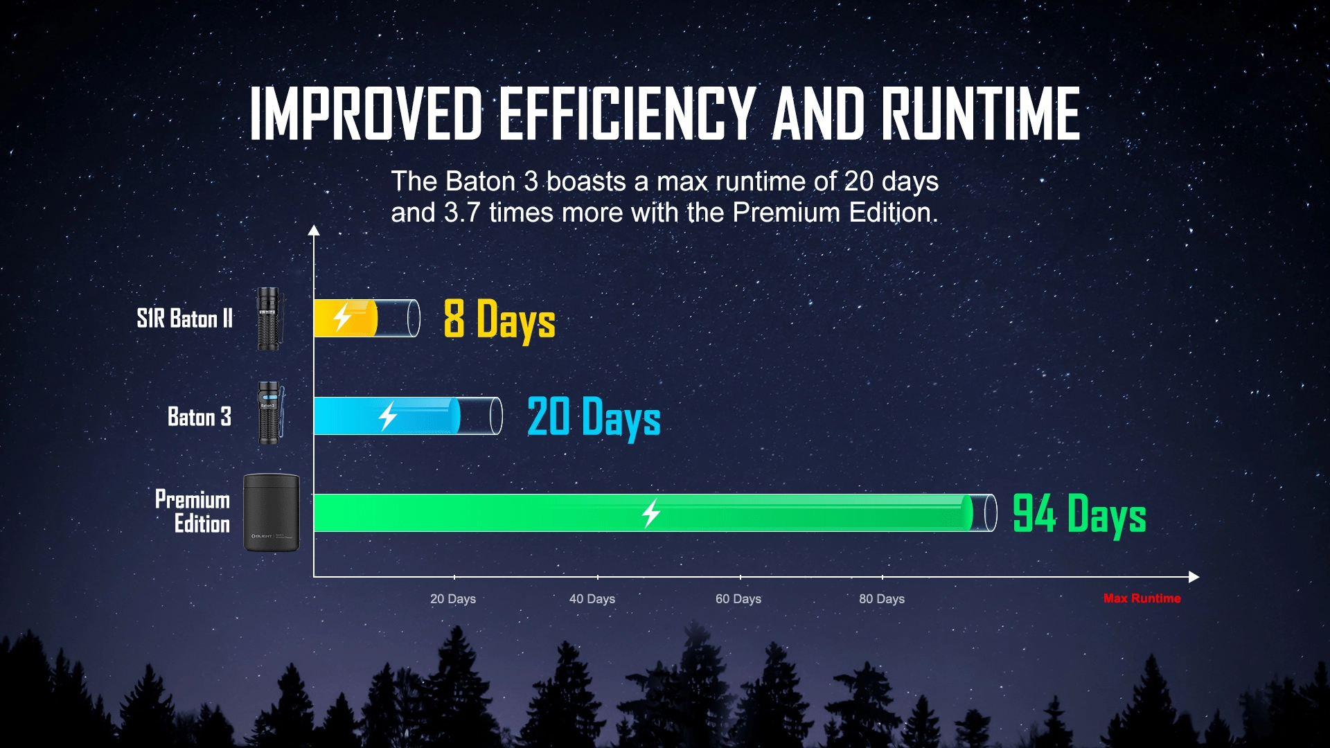 - Jusqu’à 20 jours d’autonomie en mode clair de lune (0,5 lm)