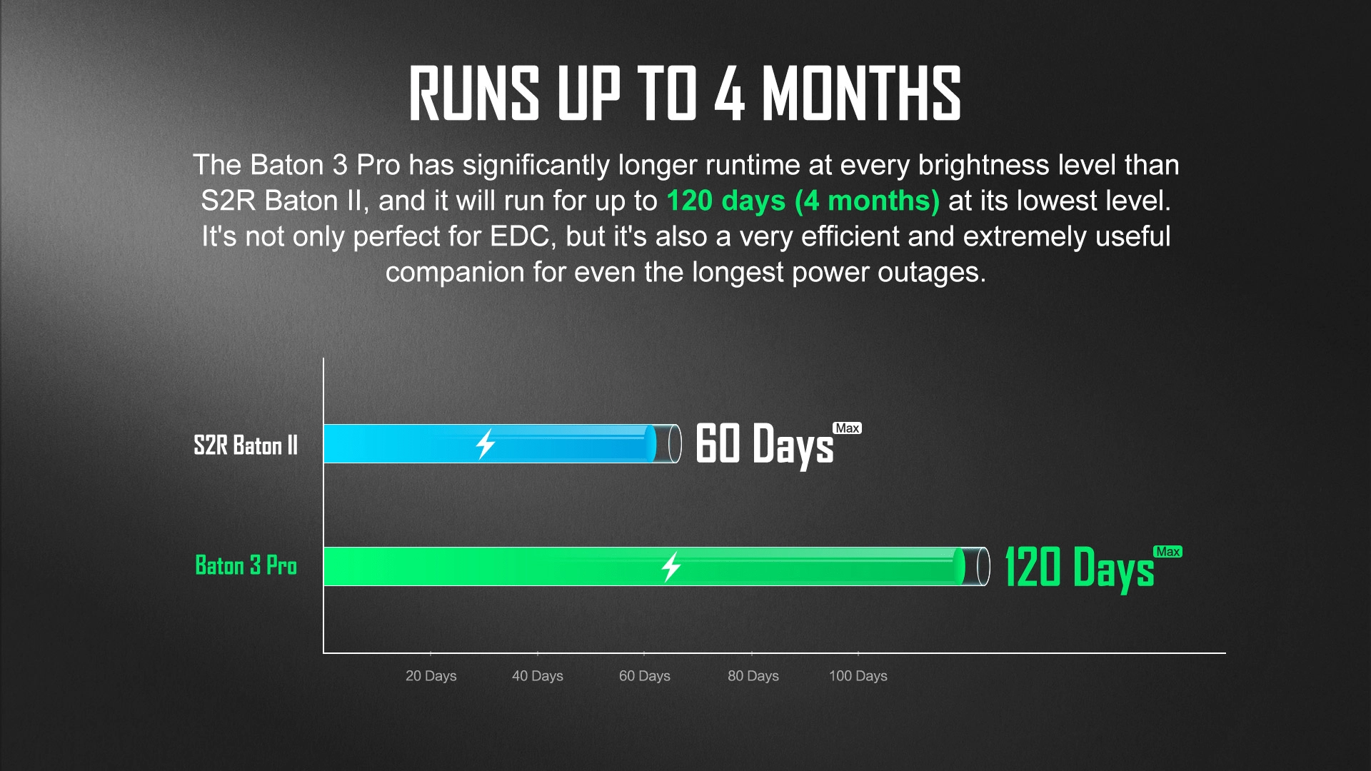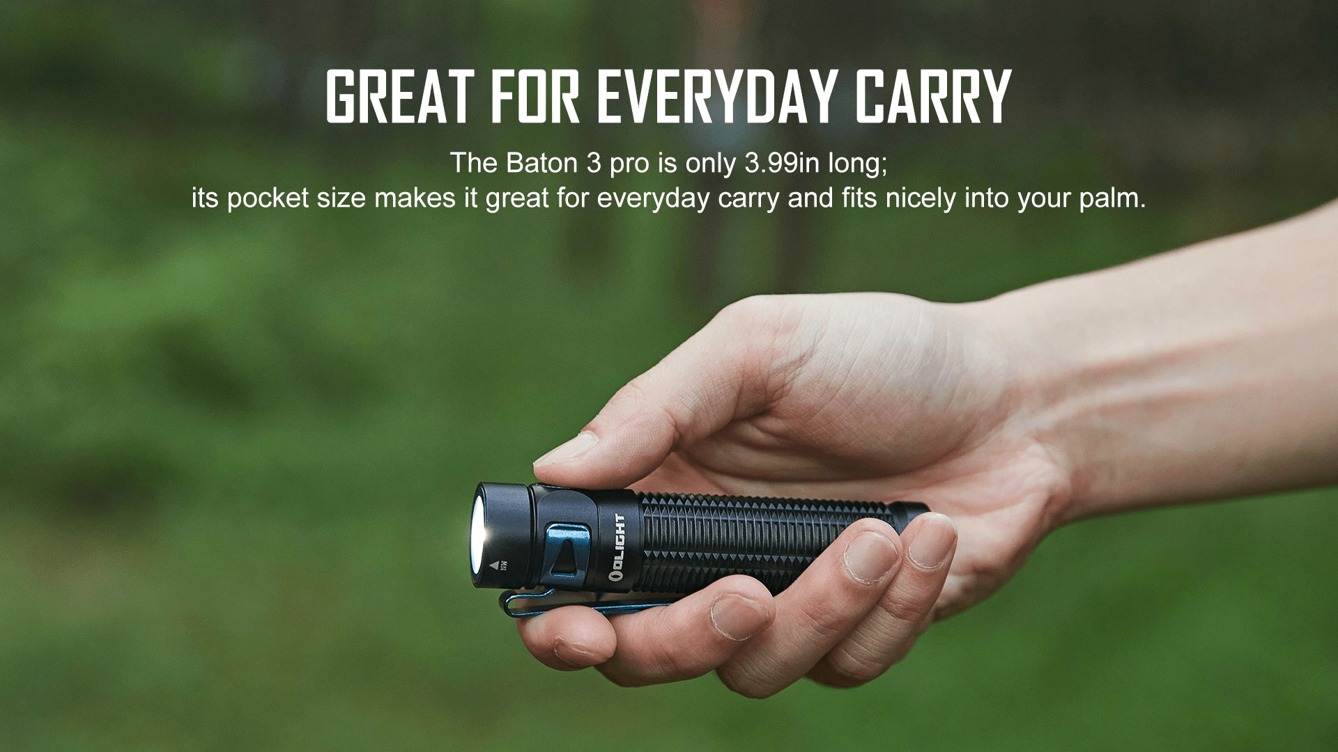 L’OLIGHT Baton 3 Pro CW est une lampe de poche performante mais de poche, idéale pour un usage quotidien, le travail et l’outdoor. Elle offre un flux lumineux de 1 500 lm avec une portée de 175 m et une autonomie extrême jusqu’à 120 jours en modes faibles. Grâce à ses dimensions compactes (longueur 10,13 cm) et à son poids de 103 g, elle se glisse aisément dans la main, la poche ou le sac.