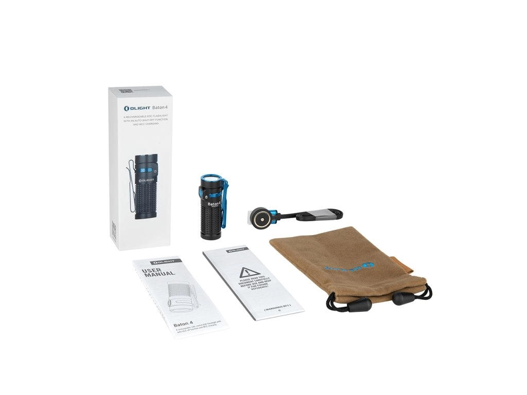 Olight Baton 4 est une lampe EDC performante avec une portée jusqu’à 170 m et cinq modes allant de Moonlight 0,5 lm à Turbo 1300 lm. L’interrupteur latéral assure une sélection rapide des modes, le corps texturé une prise en main sûre et le câble de recharge magnétique MCC 1A une charge pratique sans retirer la batterie.