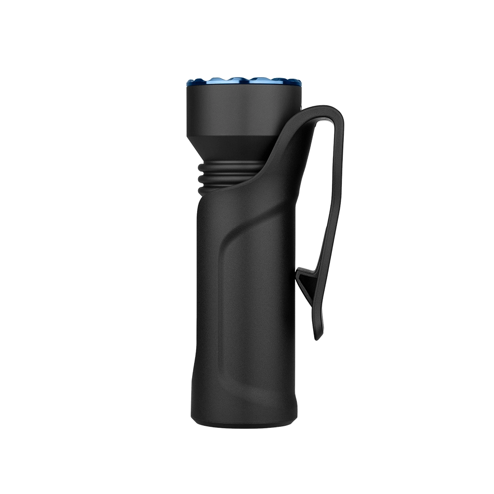 Alimentée par une batterie Li‑ion rechargeable 18500 (3,6 V, 2040 mAh), elle offre une autonomie allant jusqu’à 4 h 57 min. Des vibrations vous avertissent à temps lorsque l’énergie baisse. La construction robuste en aluminium anodisé avec prise texturée tient bien en main et répond à l’indice d’étanchéité IPX8.