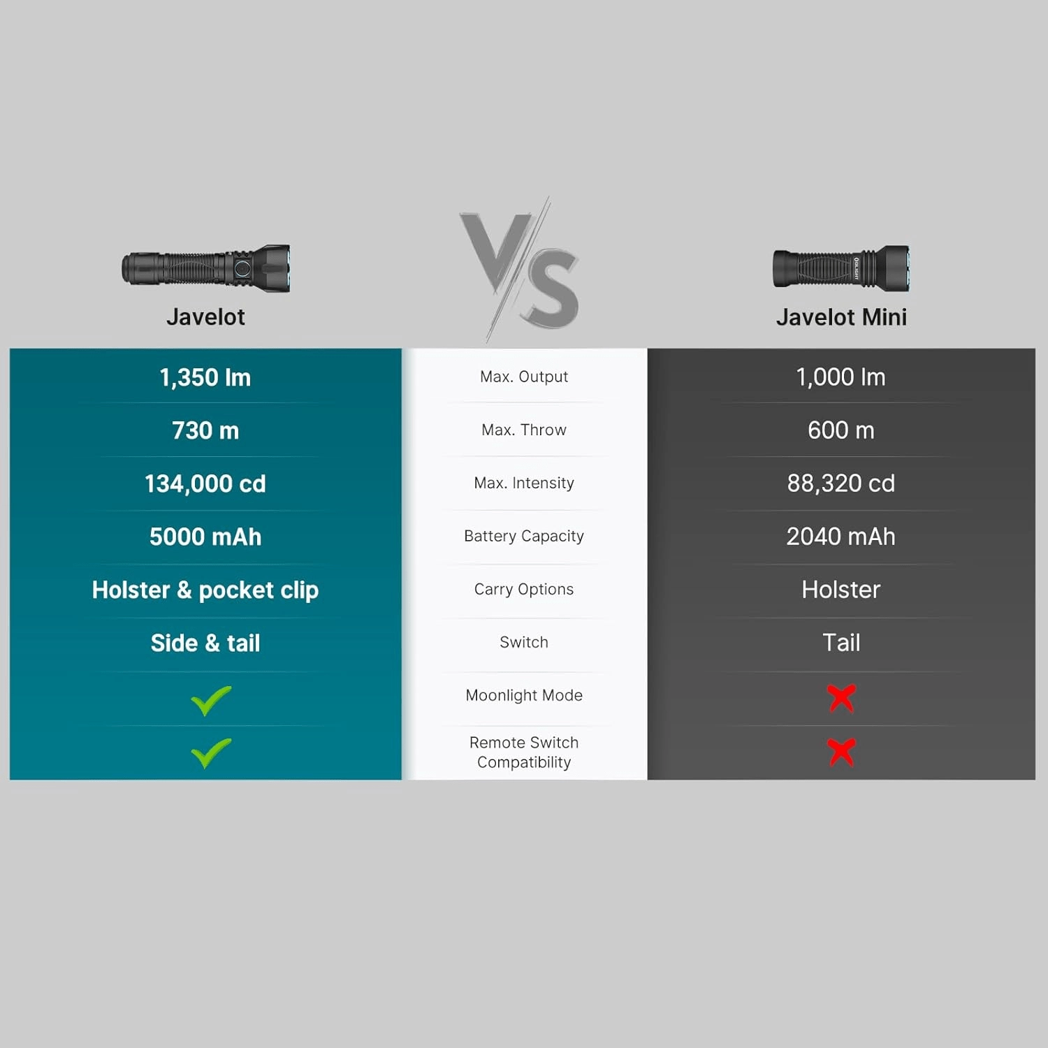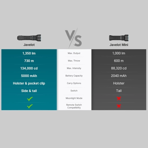 OLIGHT Javelot est une lampe tactique compacte mais exceptionnellement puissante, conçue pour les utilisateurs qui exigent grande portée, fiabilité et contrôle rapide. Sa batterie rechargeable 21700 haute capacité de 5000 mAh garantit des dizaines d’heures de fonctionnement, et en mode le plus économe plus de deux mois d’éclairage continu.