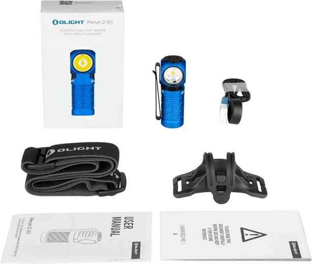 - Perun 2 Mini (avec batterie), câble magnétique MCC1A, serre-tête, clip de poche, base de frontale, manuel d’utilisation