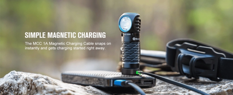 Recharge rapide et pratique via câble magnétique. L’embout magnétique permet en plus une fixation sur métal et un travail mains libres.