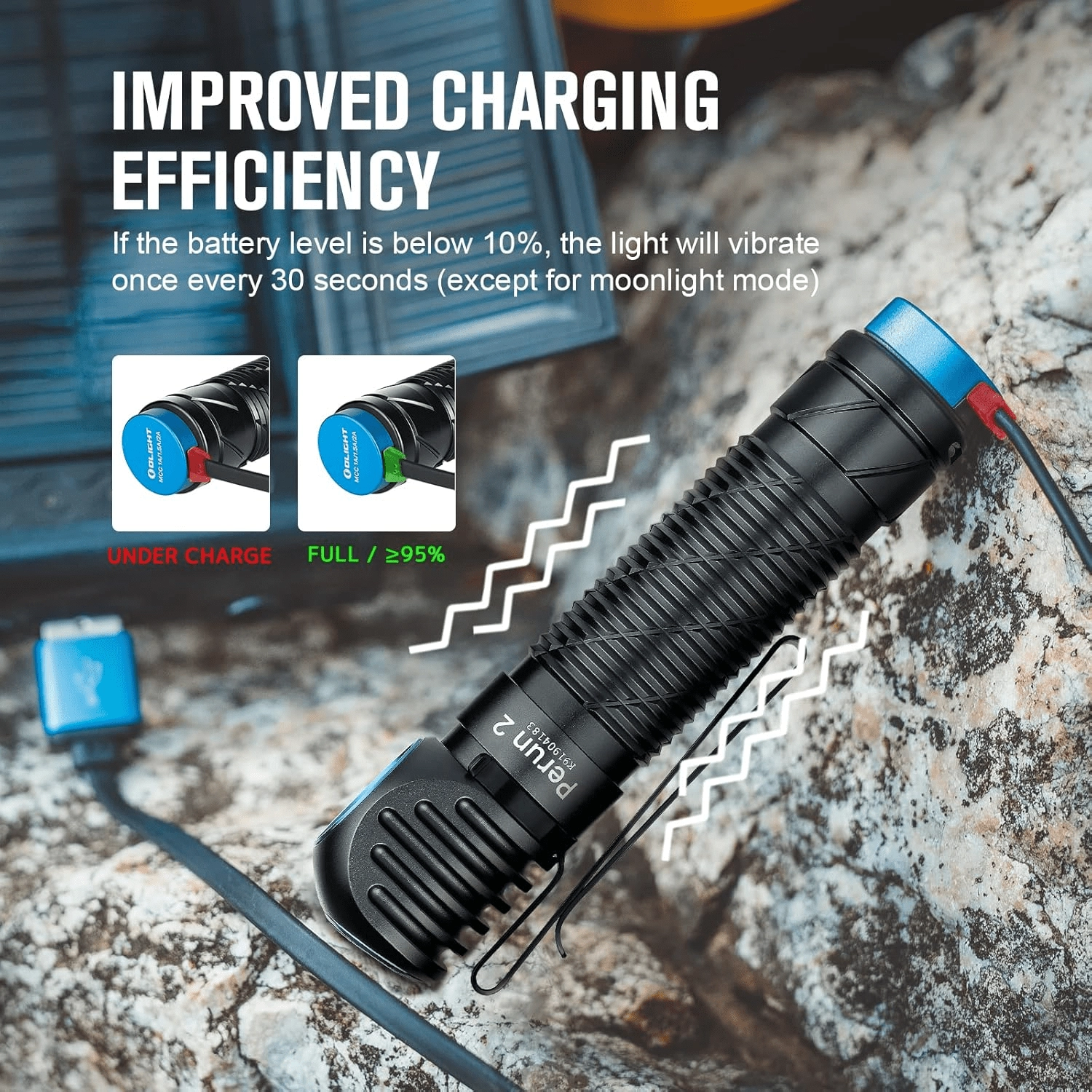 - Chargeur USB magnétique Olight MCC 1.5A (inclus)